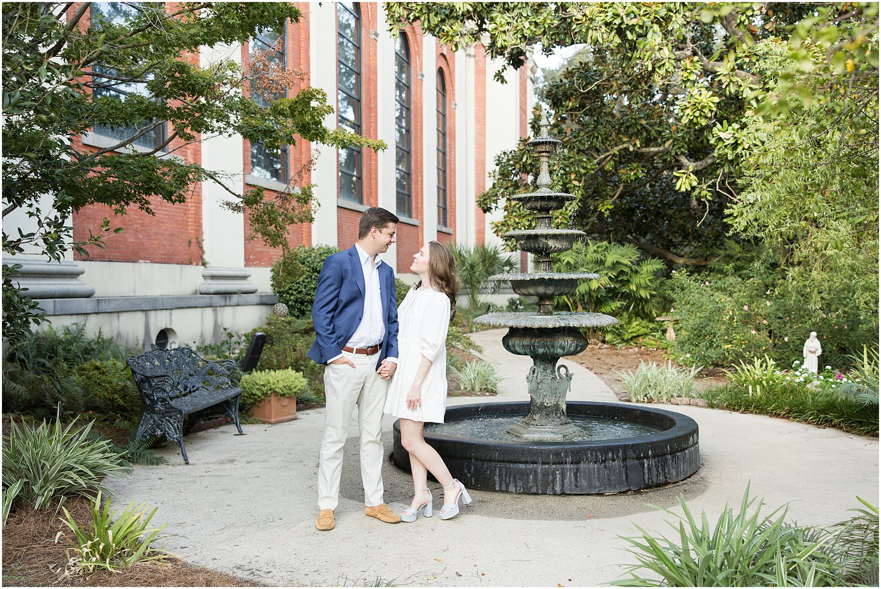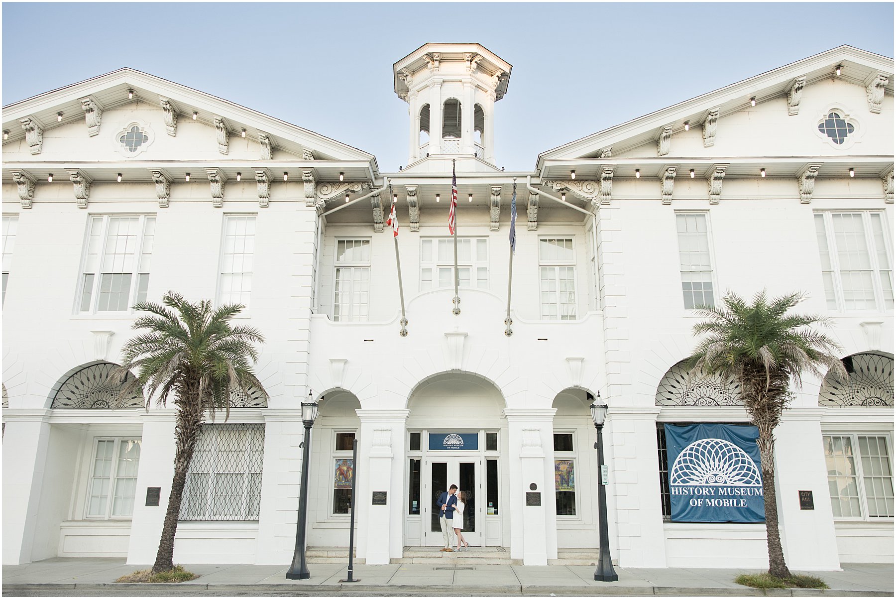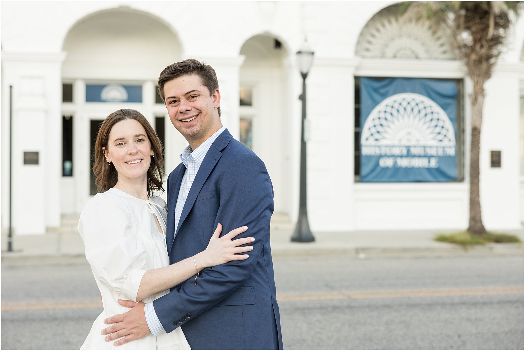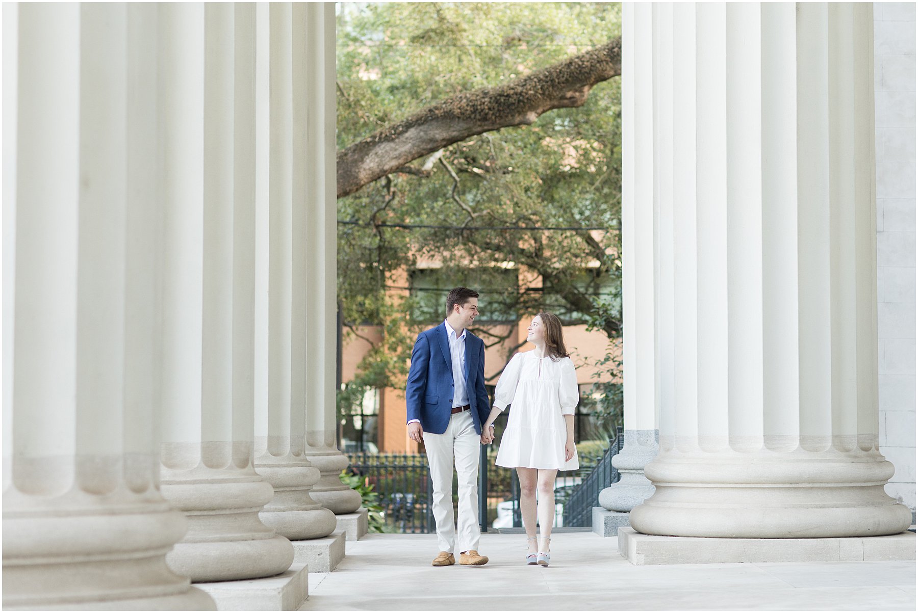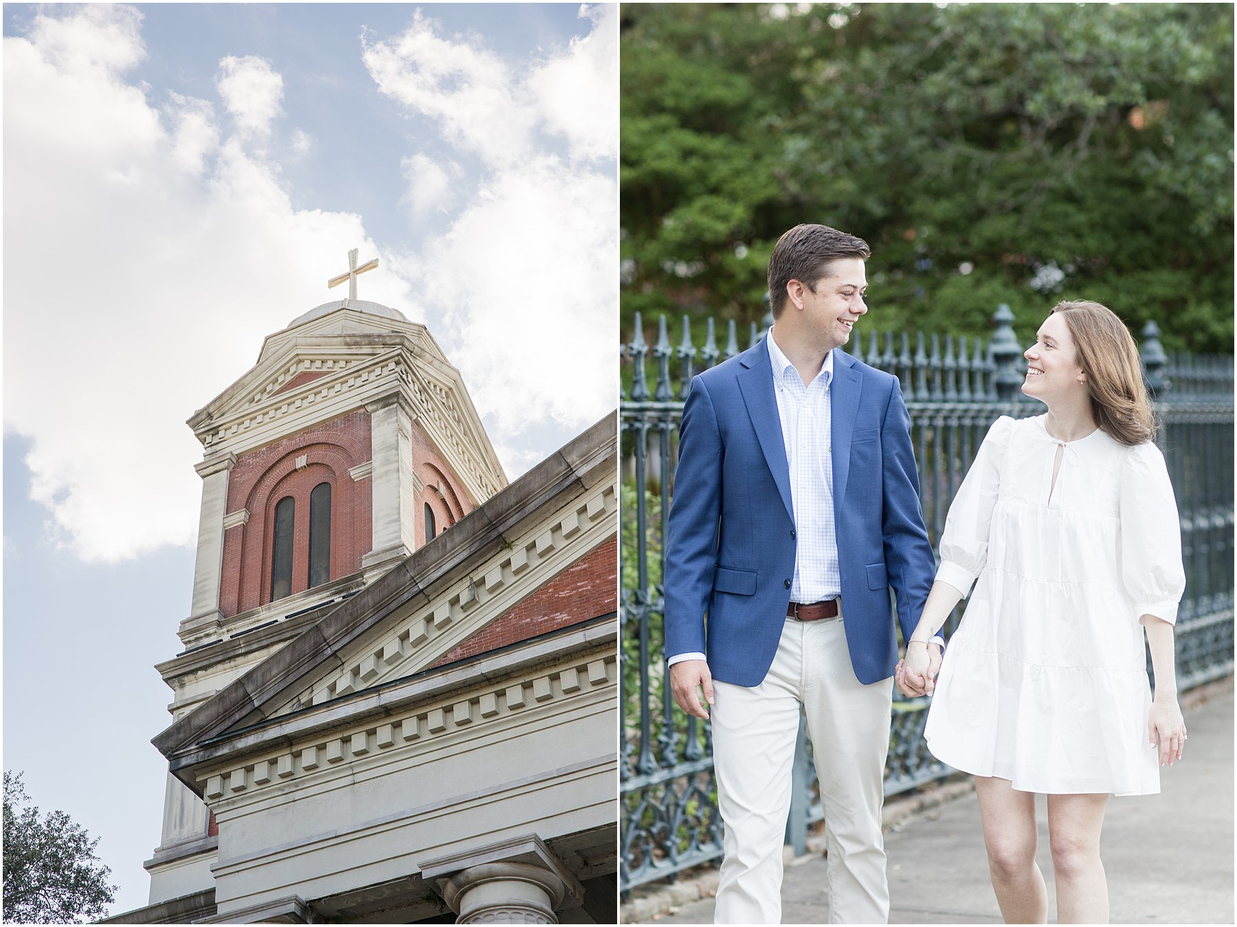 When the weather is nice, you can fit a lot into an engagement session. I was excited we were able to squeeze so many Mobile landmarks into Bekah and Jackson’s engagement session. We started at the Cathedral-Basilica of the Immaculate Conception before heading to Bienville Square. Then we made our way to the History Museum (where their reception will be) and Mardi Gras Park before ending the shoot with a rooftop view.