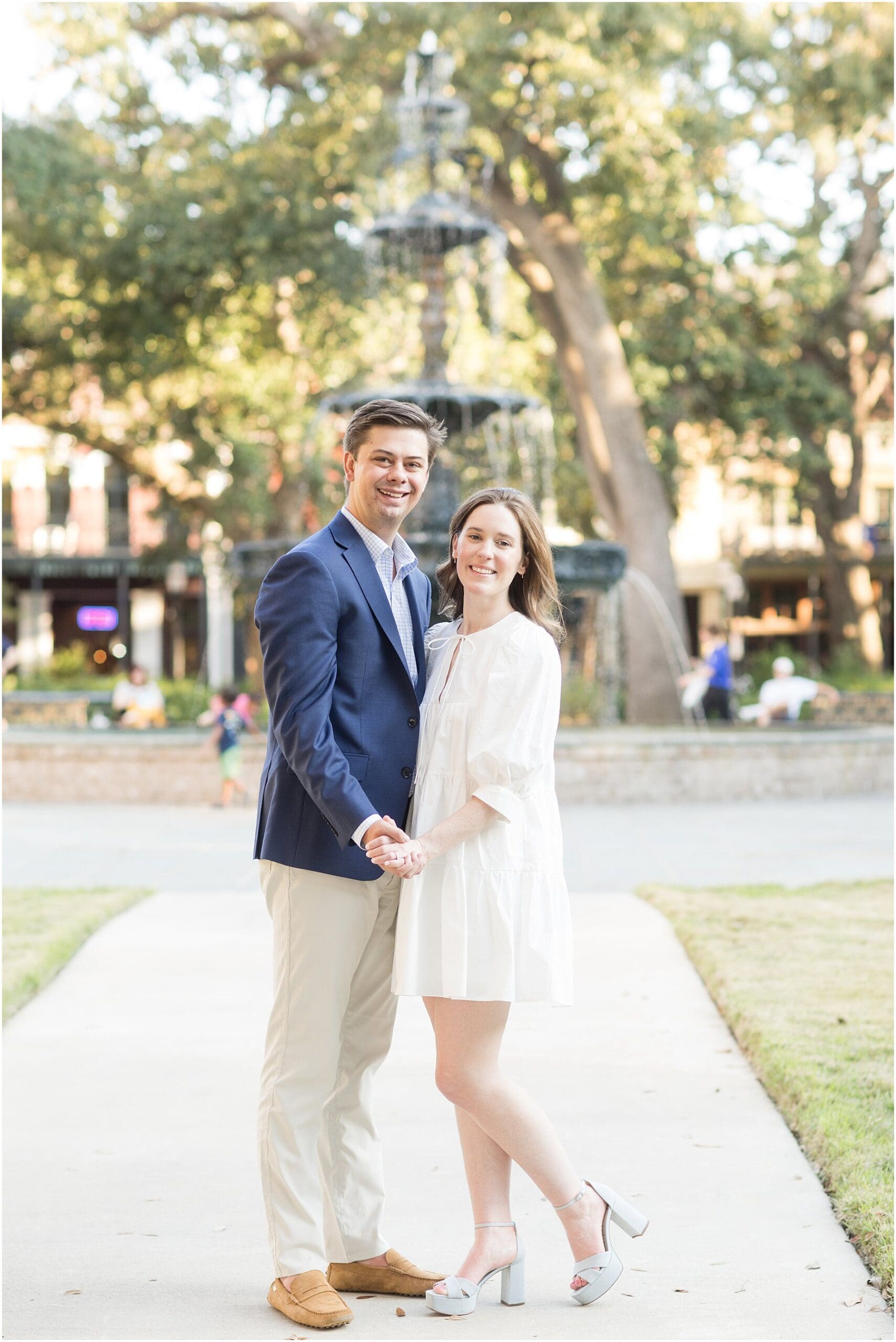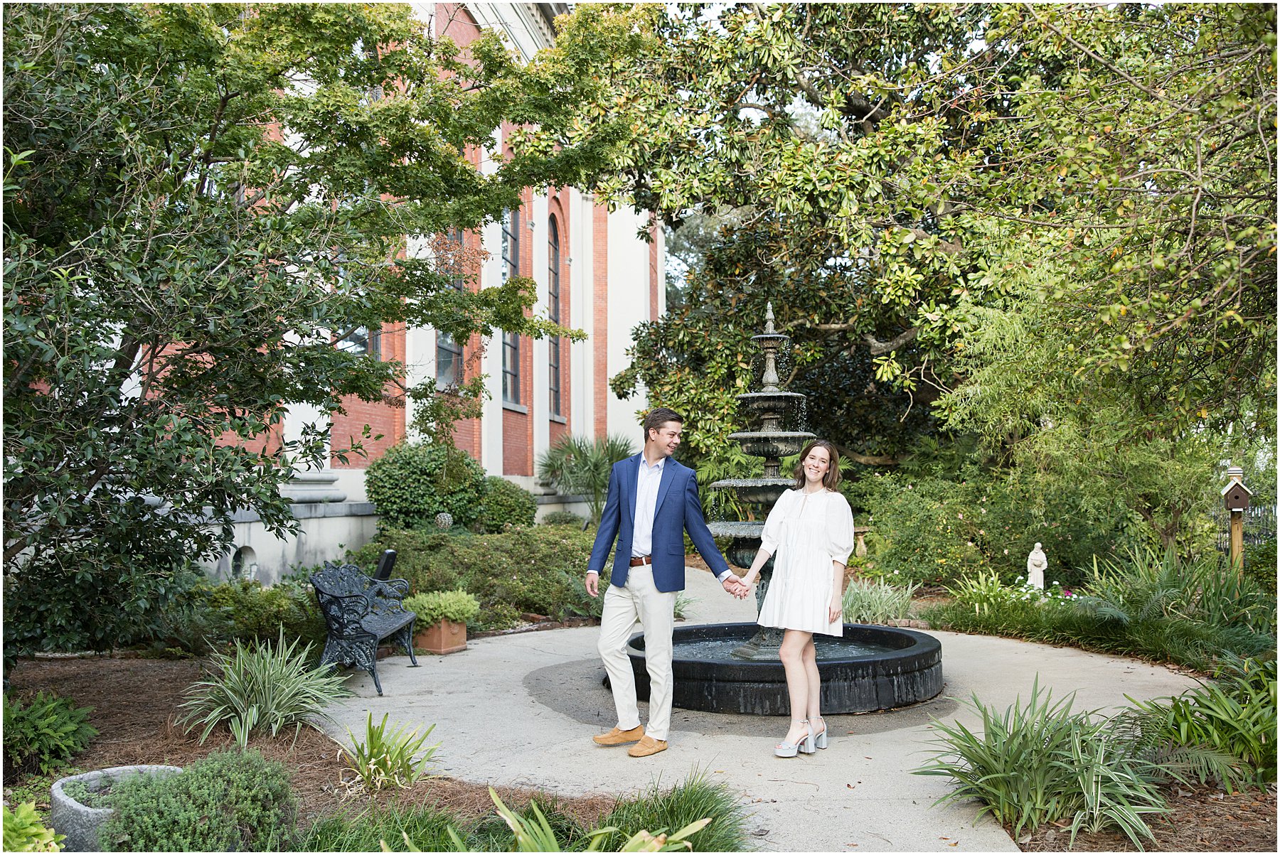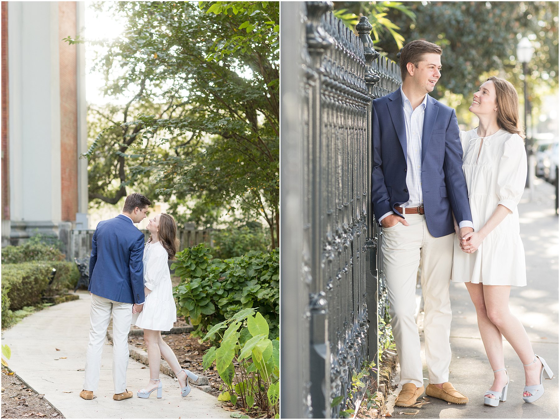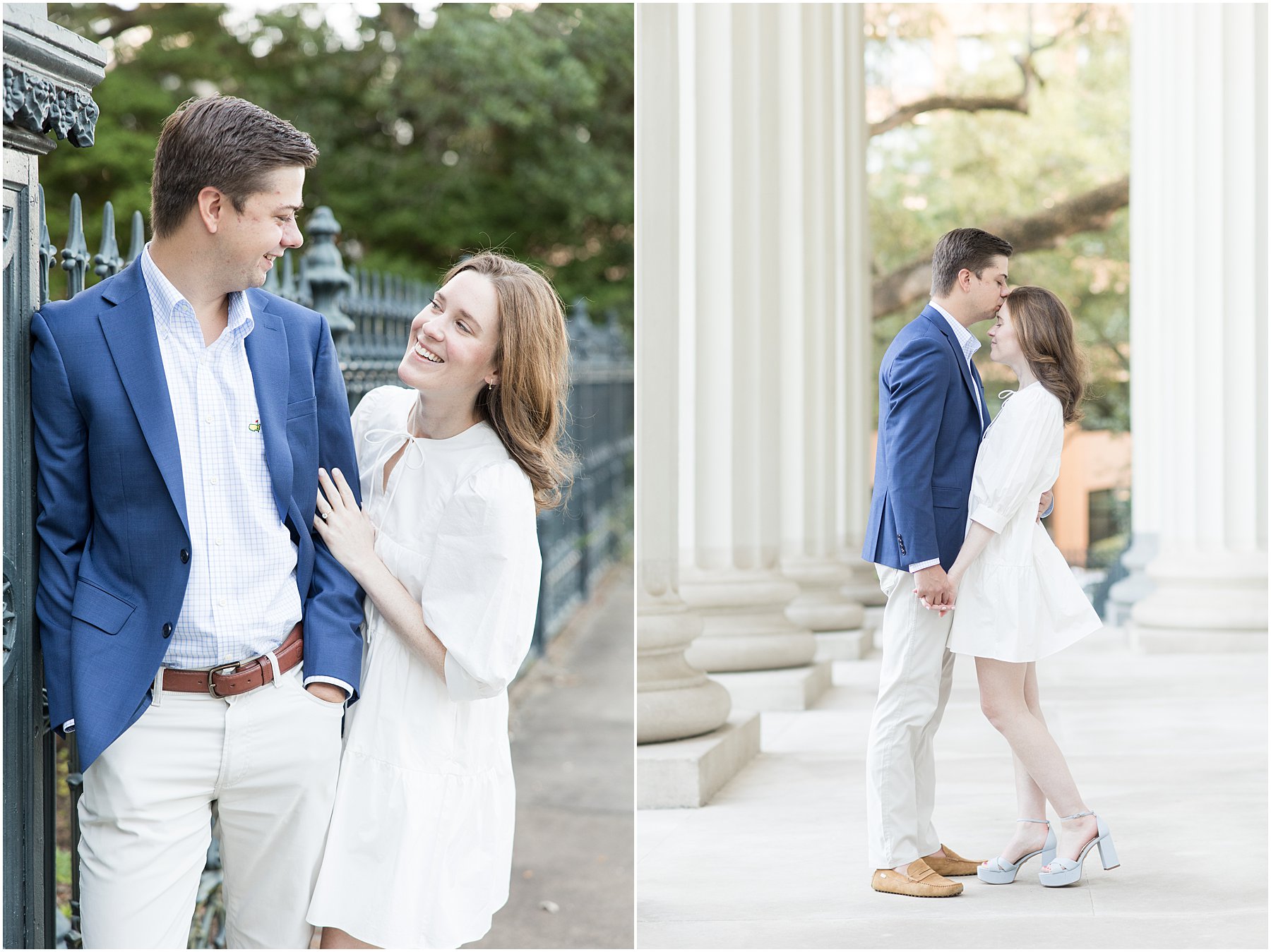 When the weather is nice, you can fit a lot into an engagement session. I was excited we were able to squeeze so many Mobile landmarks into Bekah and Jackson’s engagement session. We started at the Cathedral-Basilica of the Immaculate Conception before heading to Bienville Square. Then we made our way to the History Museum (where their reception will be) and Mardi Gras Park before ending the shoot with a rooftop view.