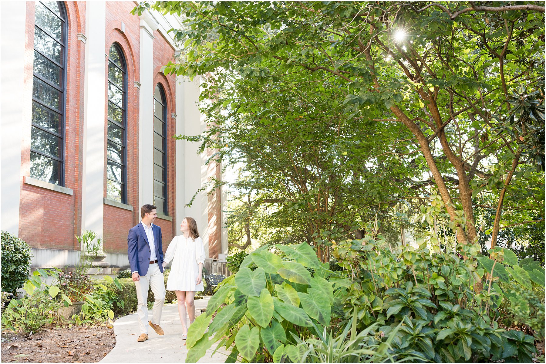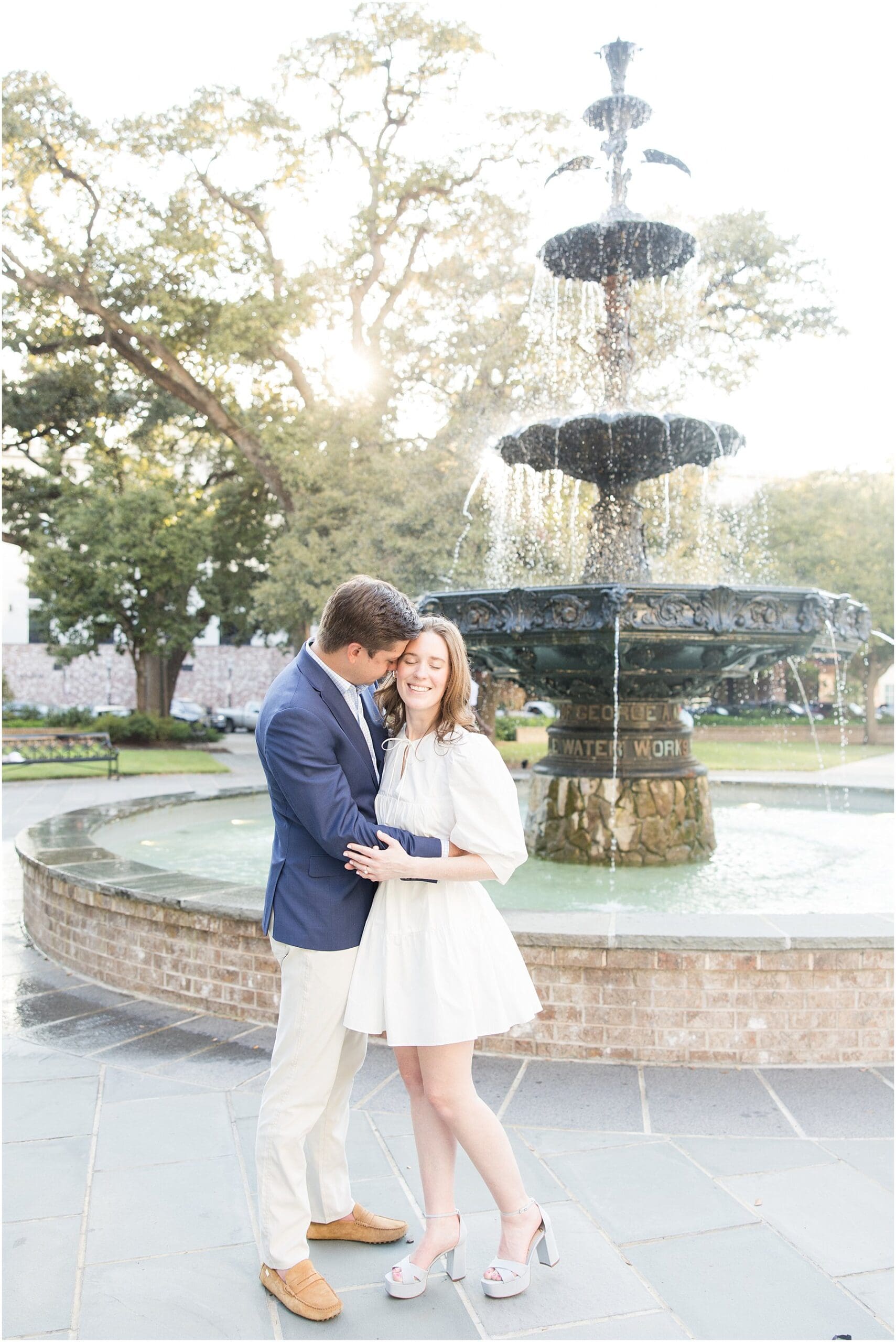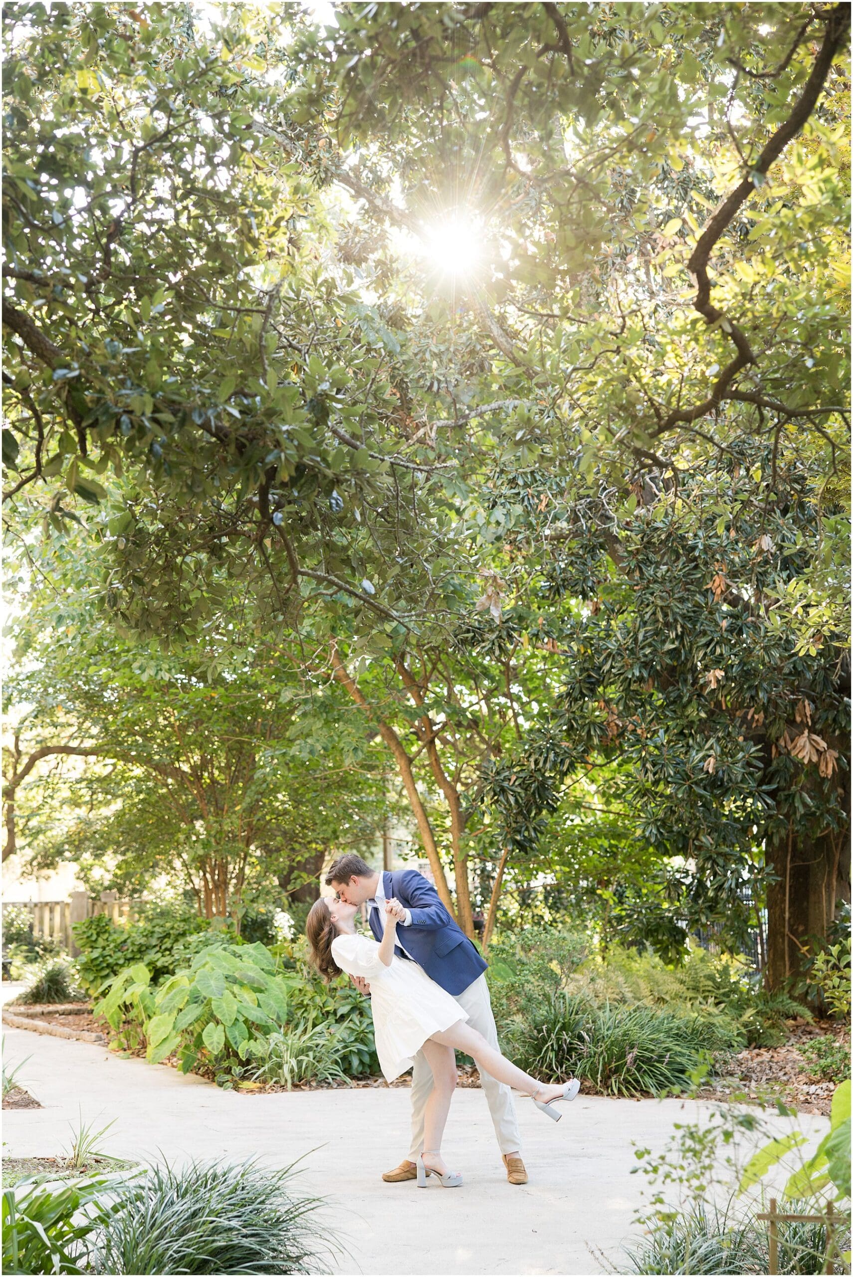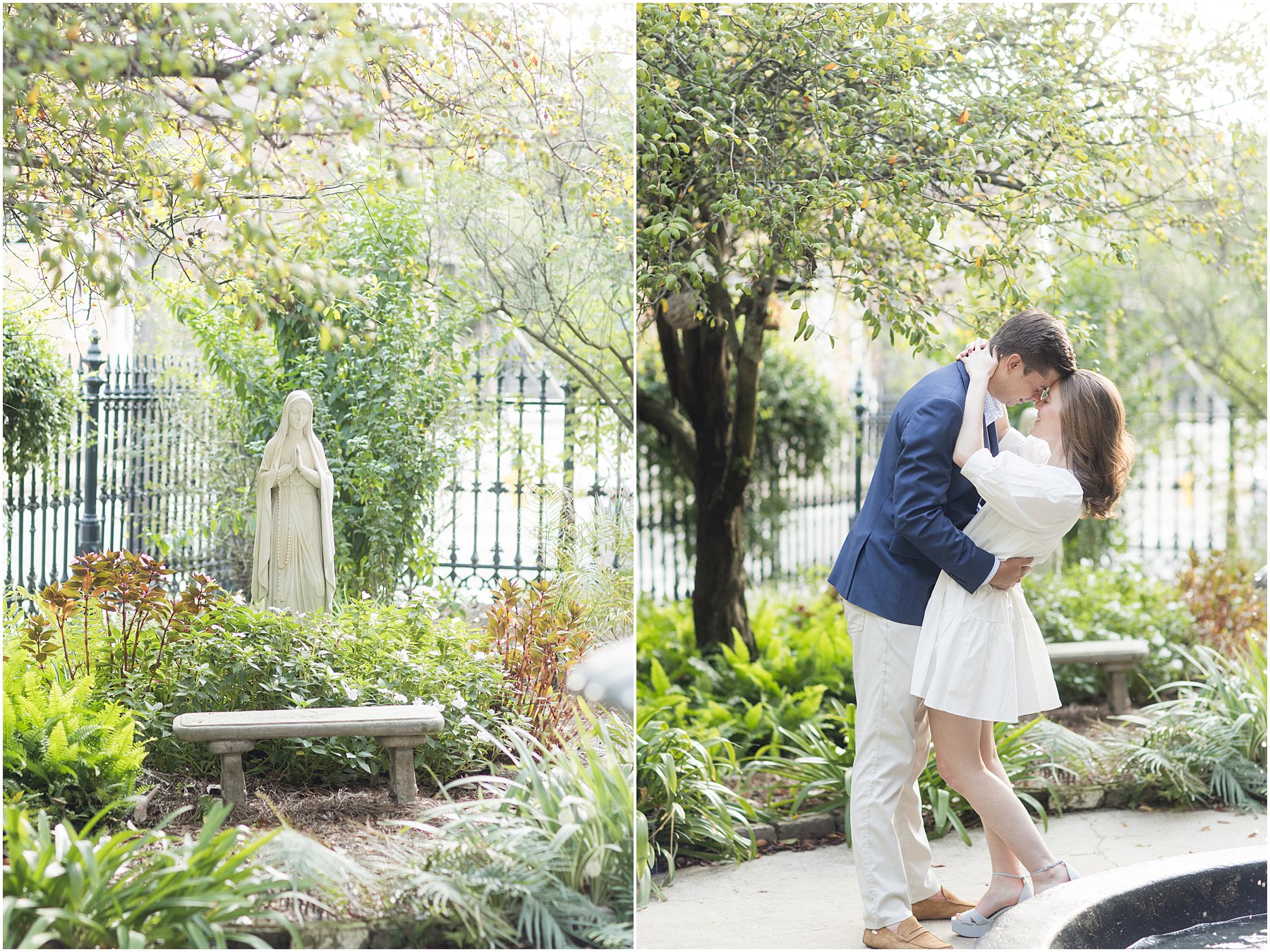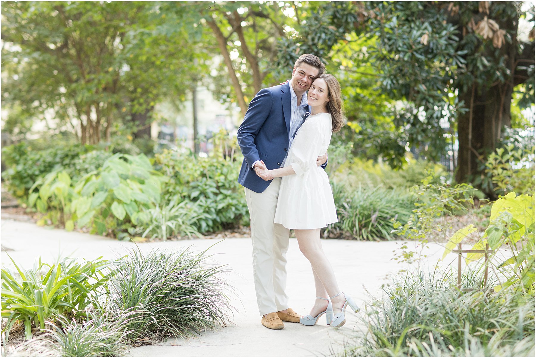 When the weather is nice, you can fit a lot into an engagement session. I was excited we were able to squeeze so many Mobile landmarks into Bekah and Jackson’s engagement session. We started at the Cathedral-Basilica of the Immaculate Conception before heading to Bienville Square. Then we made our way to the History Museum (where their reception will be) and Mardi Gras Park before ending the shoot with a rooftop view.
