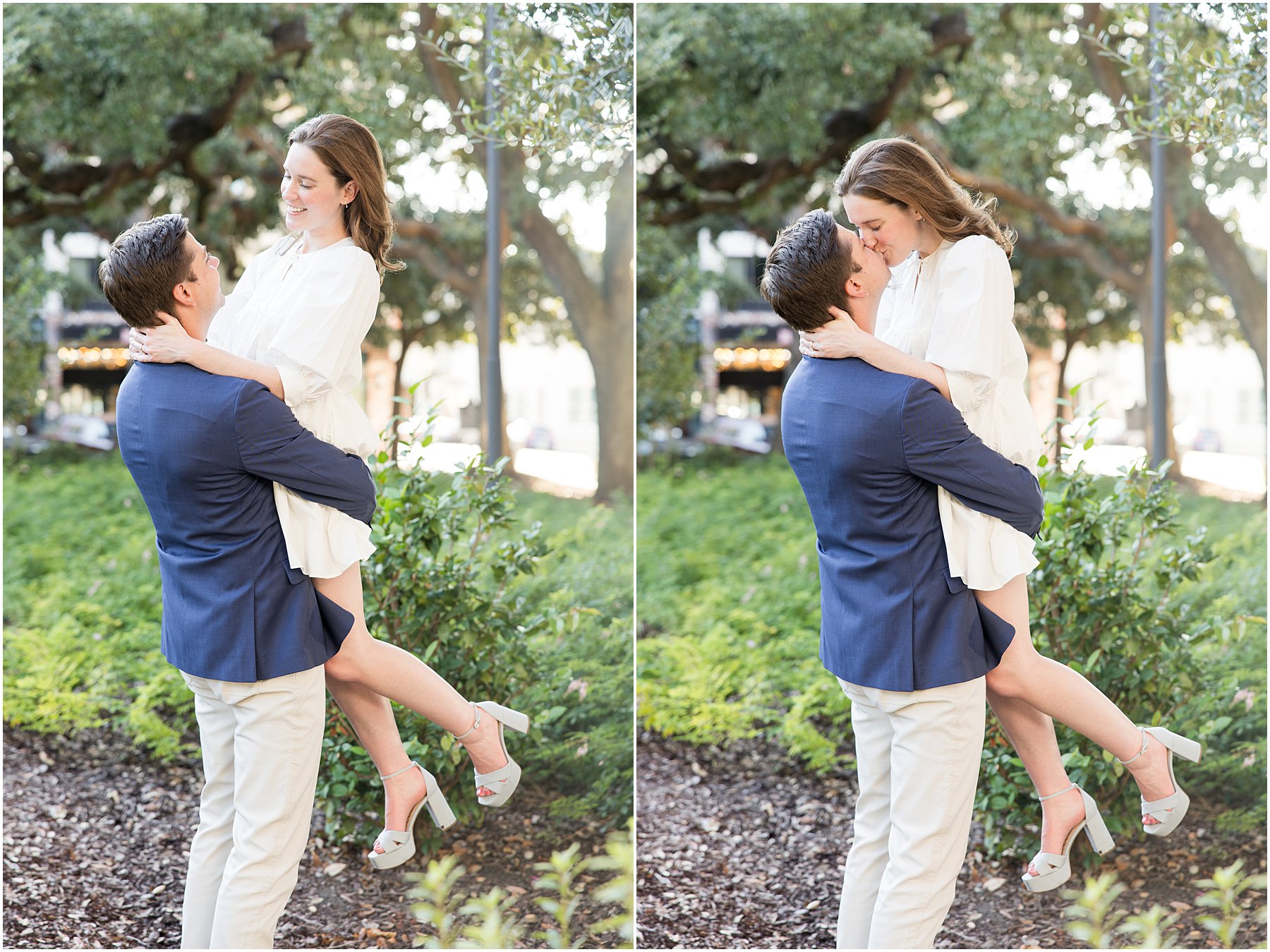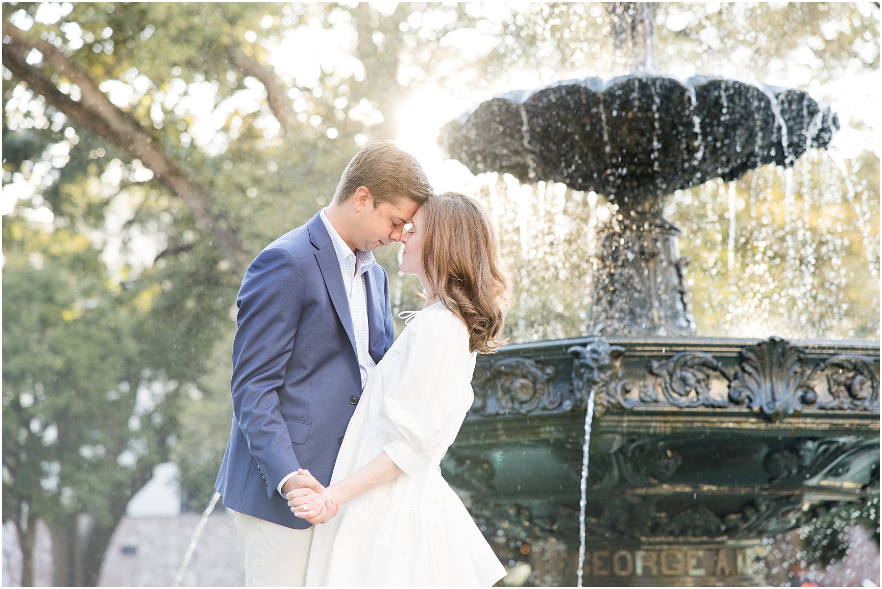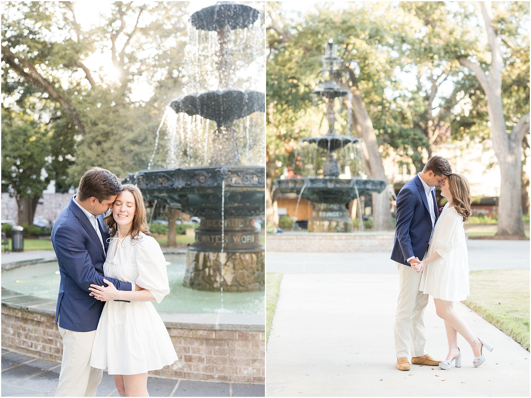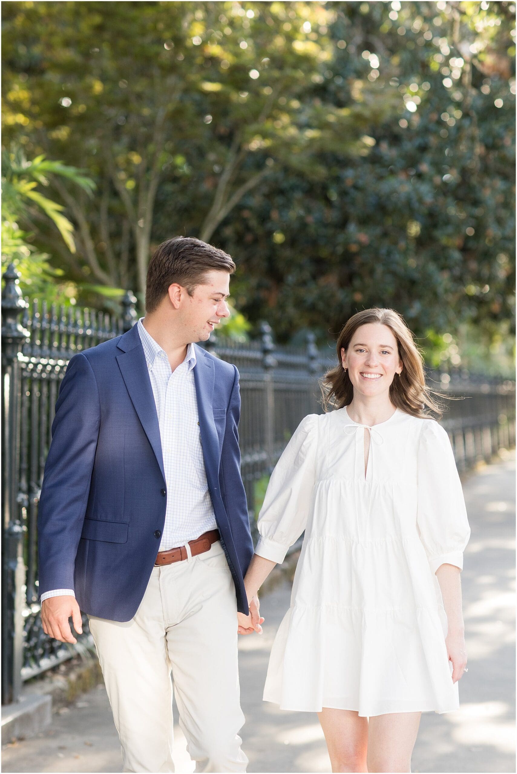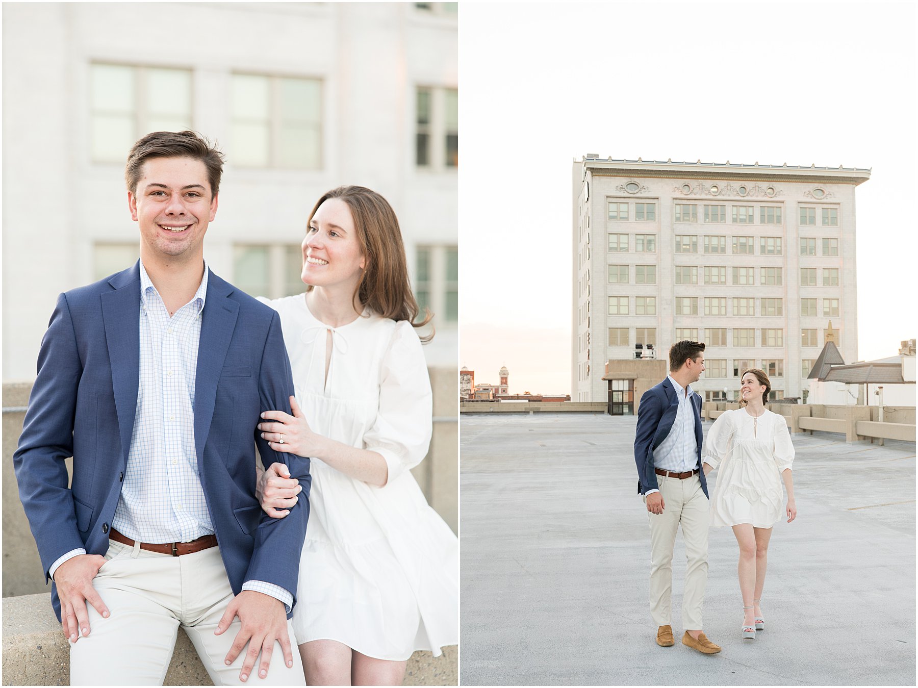 When the weather is nice, you can fit a lot into an engagement session. I was excited we were able to squeeze so many Mobile landmarks into Bekah and Jackson’s engagement session. We started at the Cathedral-Basilica of the Immaculate Conception before heading to Bienville Square. Then we made our way to the History Museum (where their reception will be) and Mardi Gras Park before ending the shoot with a rooftop view.