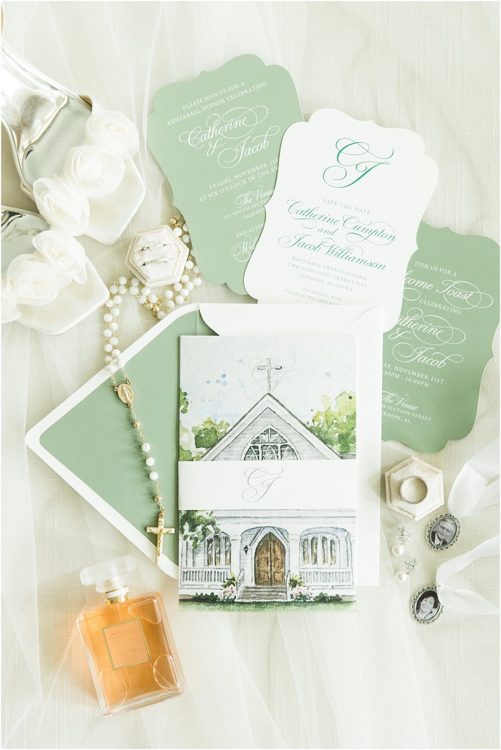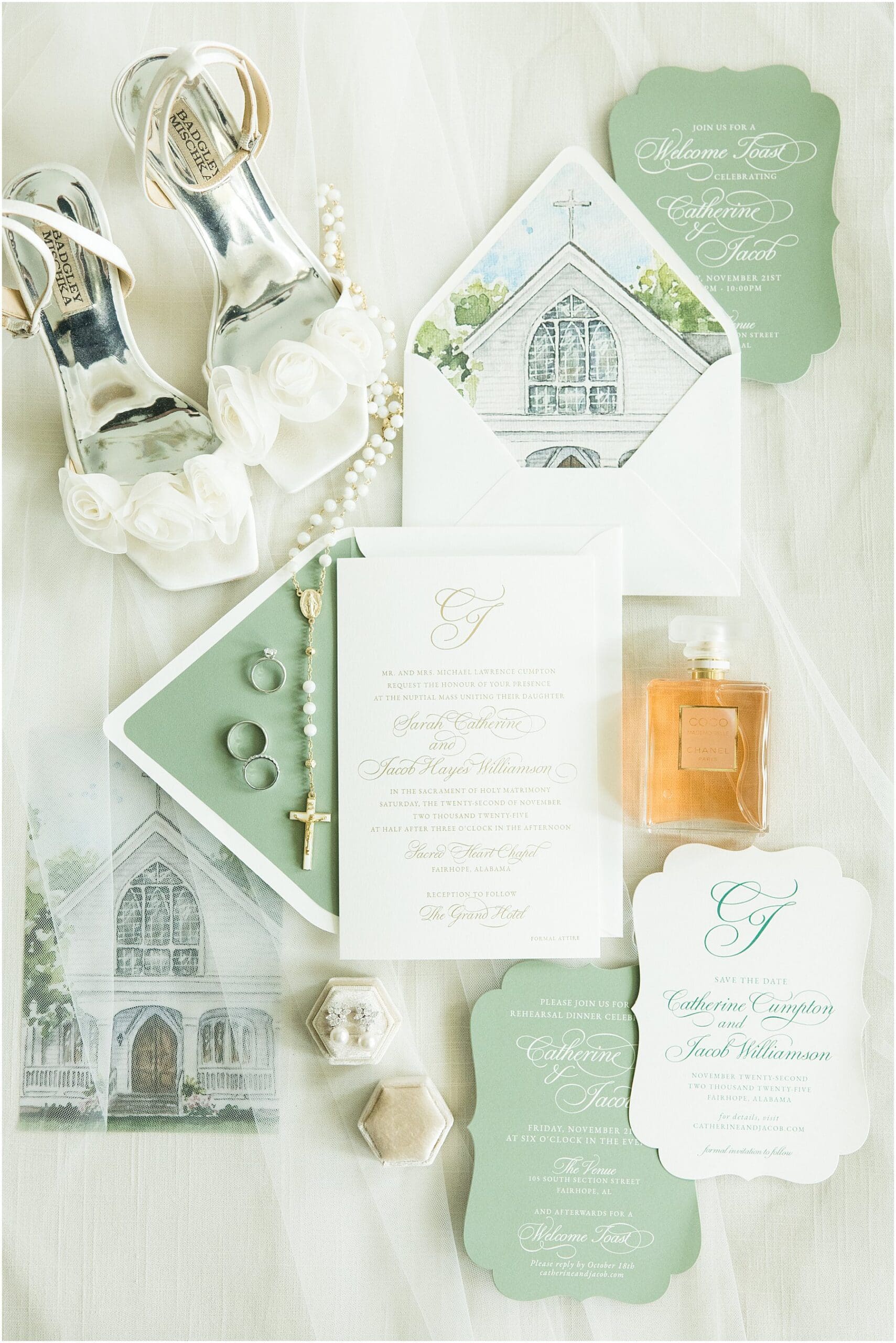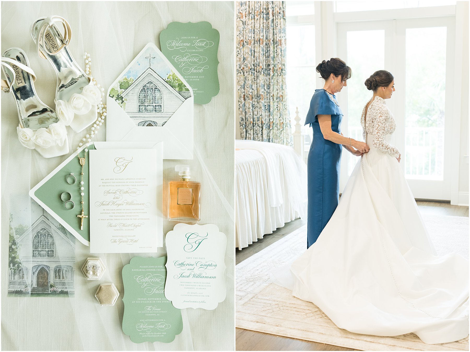 I love that Catherine chose to get ready at her parents’ home in Fairhope instead of at the hotel. It did mean we needed extra time in our timeline for moving between locations, but it was so worth it because the photos from the getting ready portion of the day will be just that much more sentimental, which matches Catherine’s personality perfectly. Sentimental details were woven through this day. In fact, Catherine changed into her mother’s wedding dress, which was refitted for her, during the reception. Talk about a fun wardrobe change!