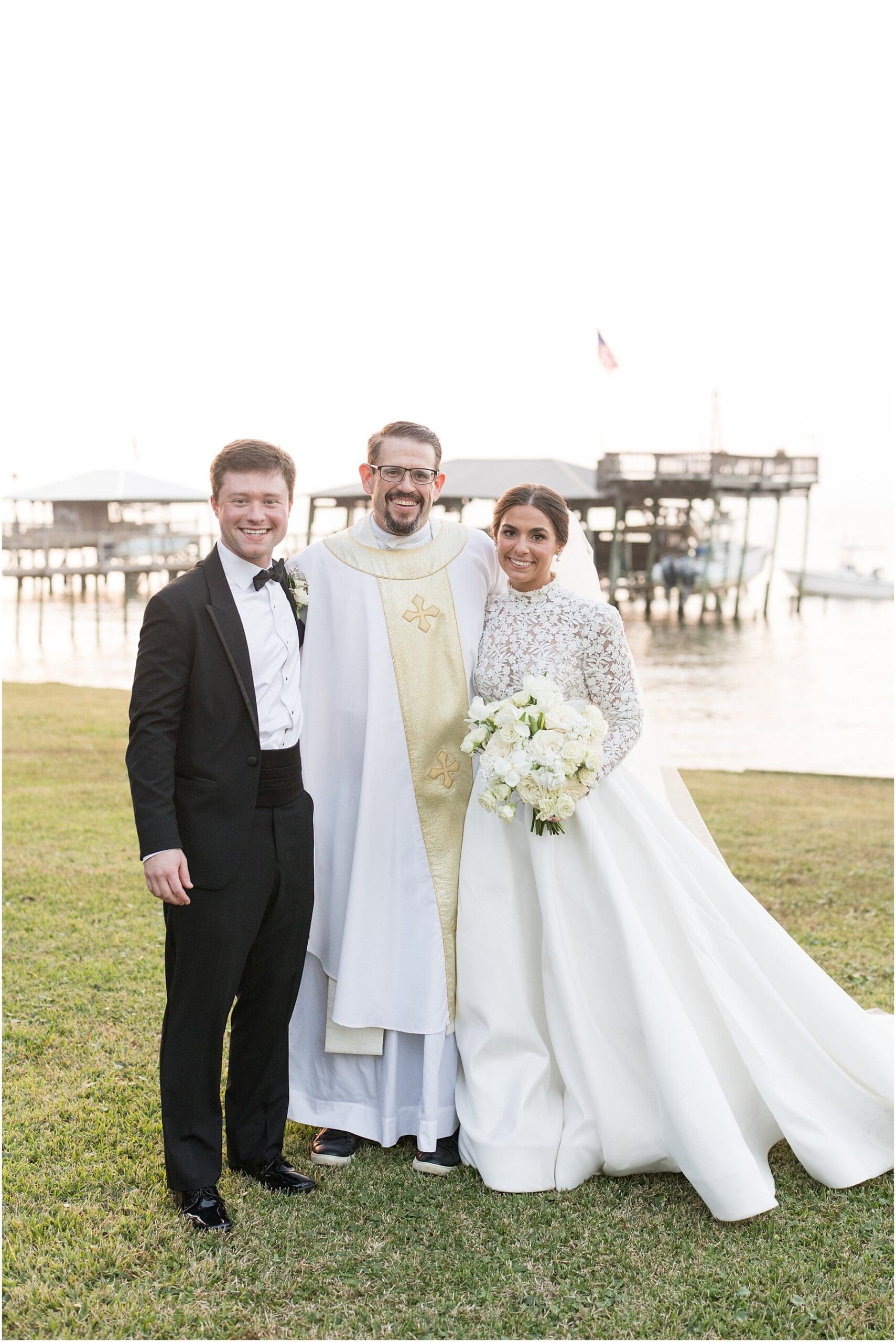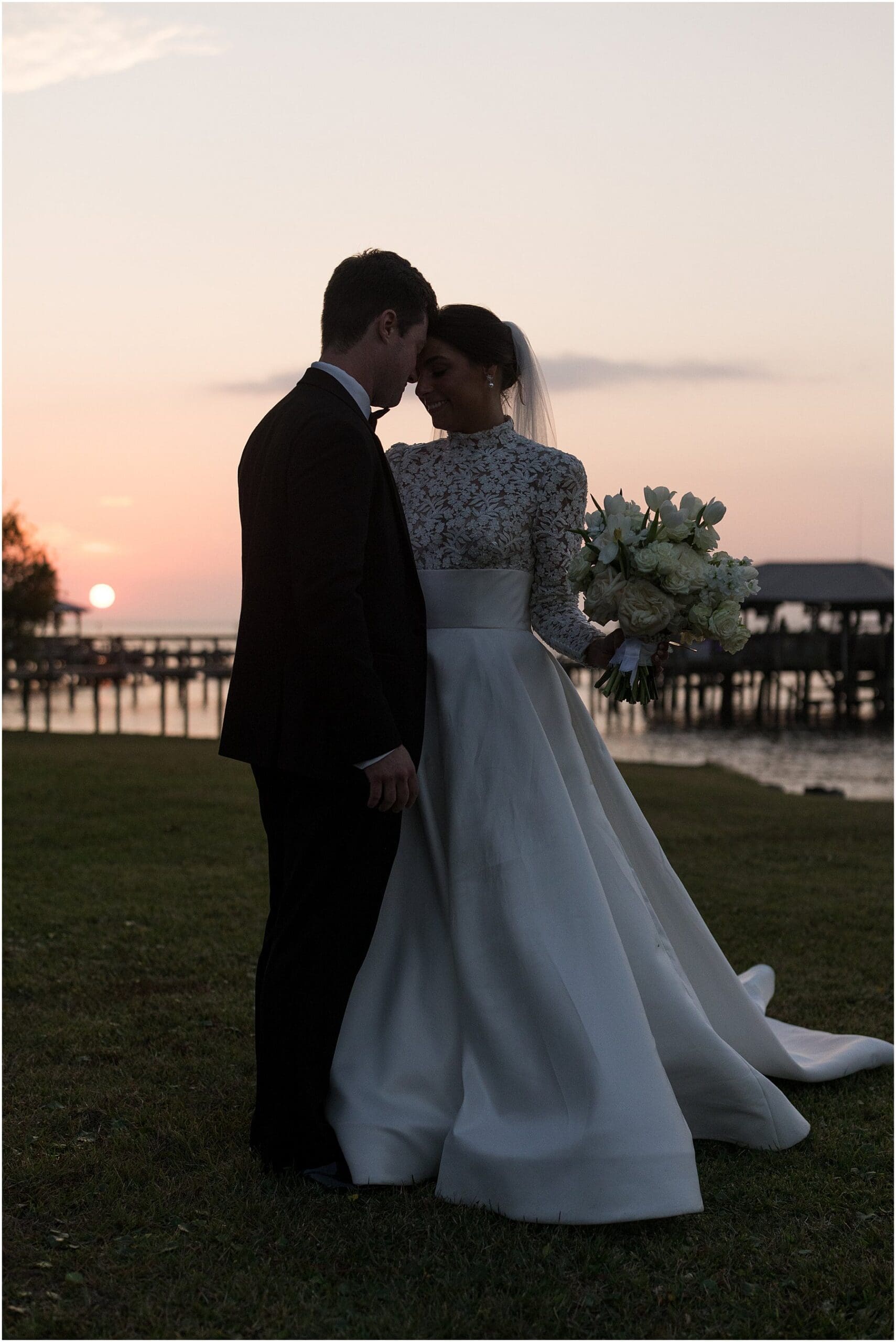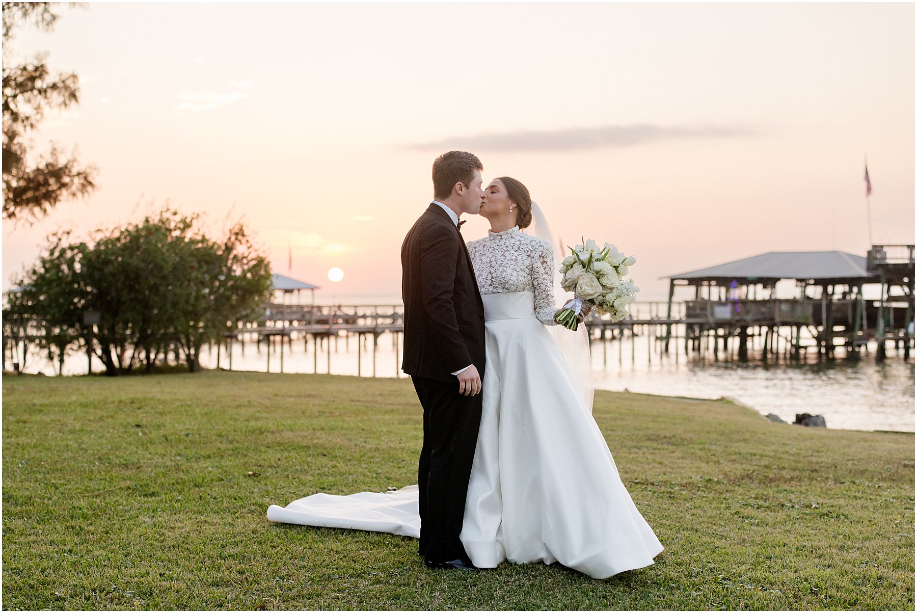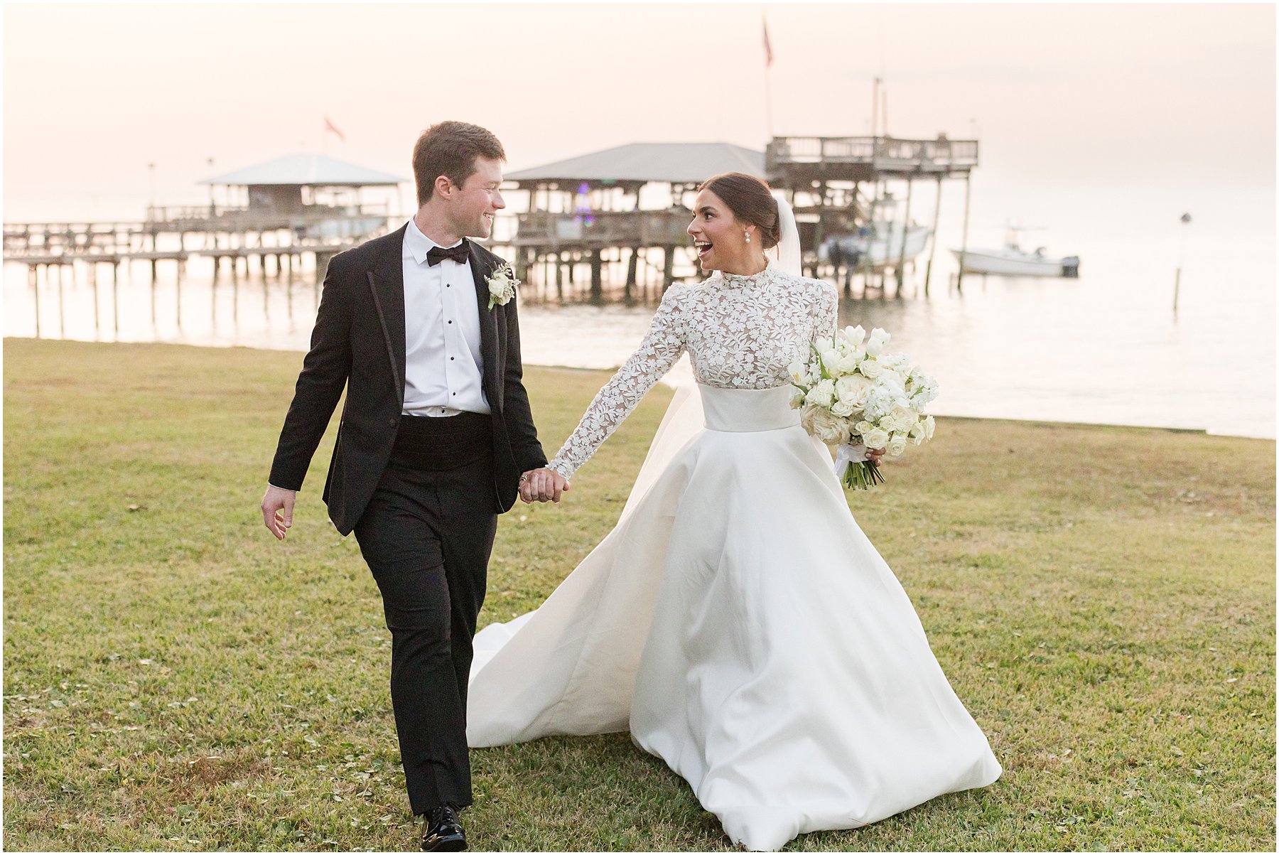 Sometimes November weddings are cold, but we were blessed with perfectly mild weather on this day, which was perfect for a wedding on the bay. Catherine and Jacob recessed out of the church just at sunset. We grabbed a few “Just Married” photos before heading straight to the Grand Hotel for the reception where Catherine and Jacob had everyone cheering during their first dance as husband and wife.
