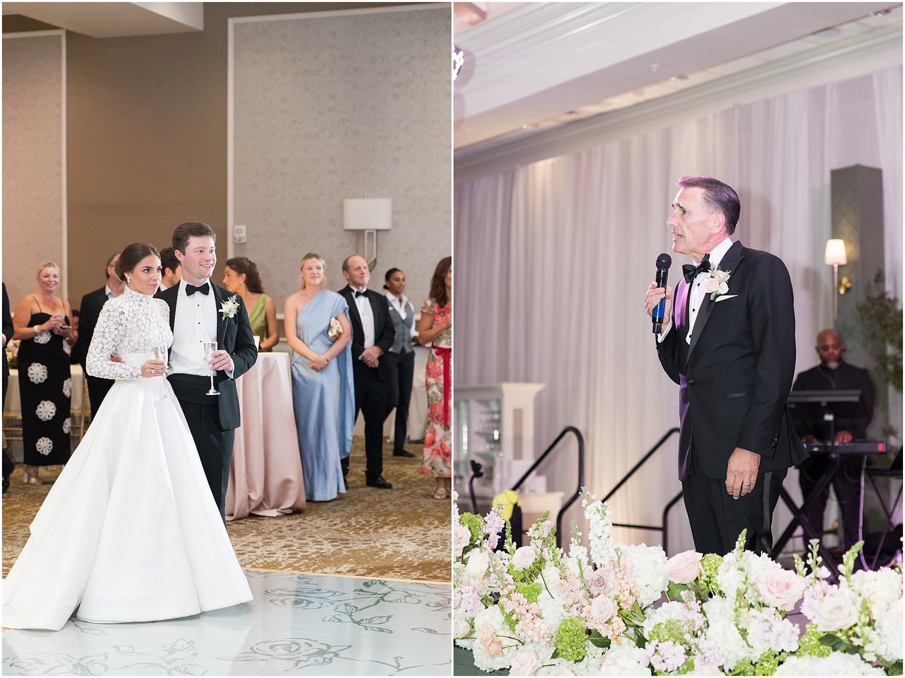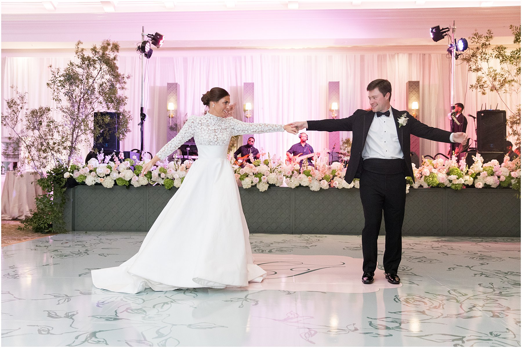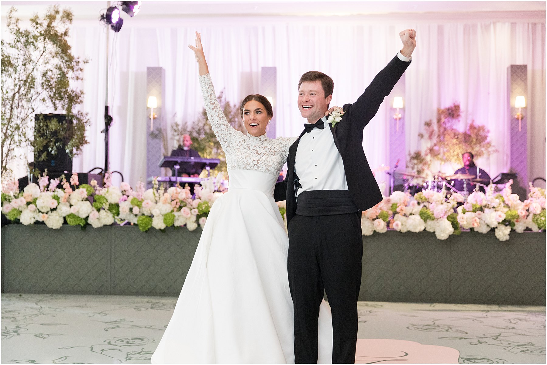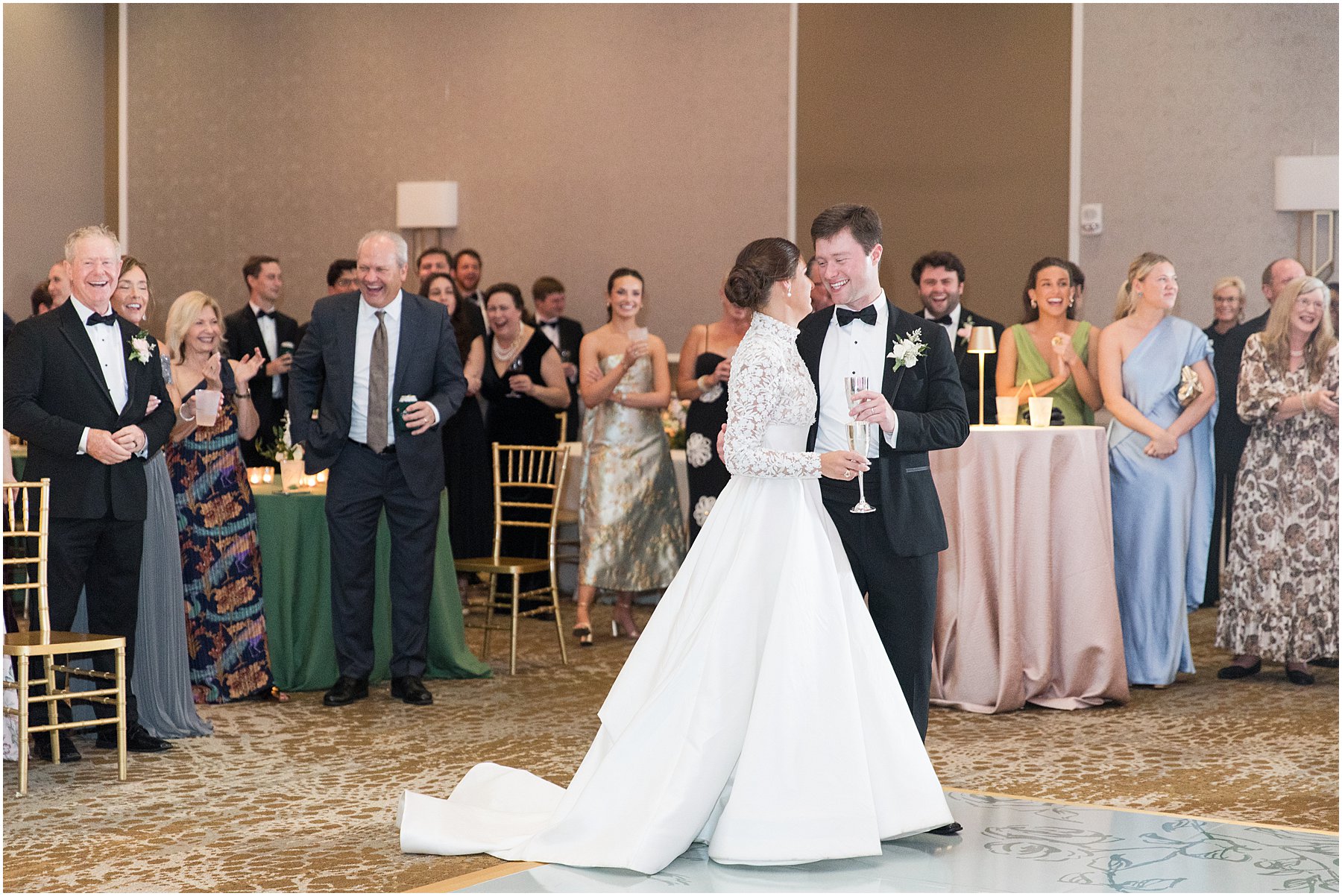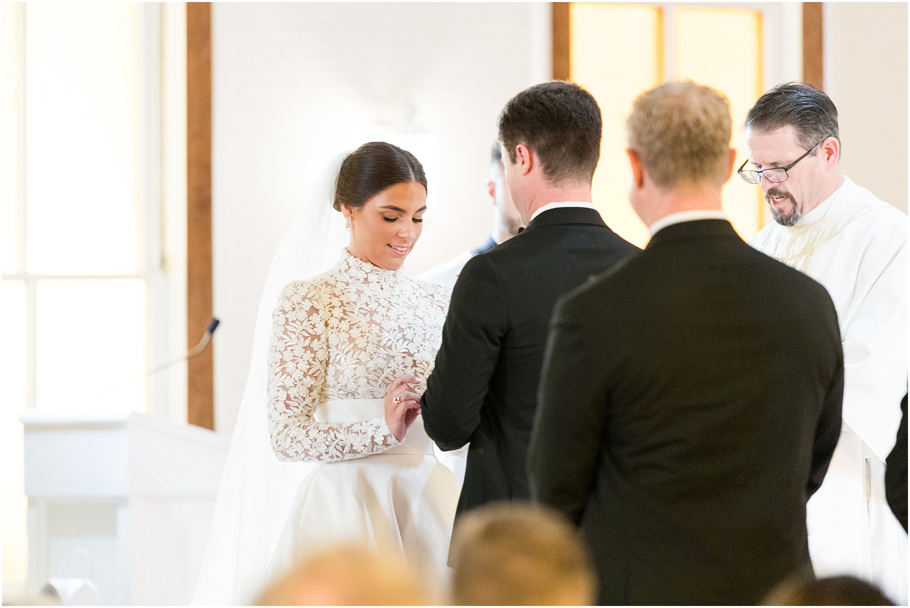 Sometimes November weddings are cold, but we were blessed with perfectly mild weather on this day, which was perfect for a wedding on the bay. Catherine and Jacob recessed out of the church just at sunset. We grabbed a few “Just Married” photos before heading straight to the Grand Hotel for the reception where Catherine and Jacob had everyone cheering during their first dance as husband and wife.