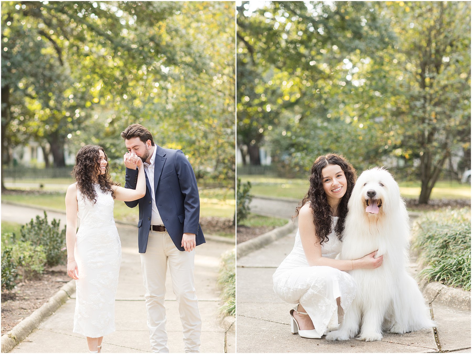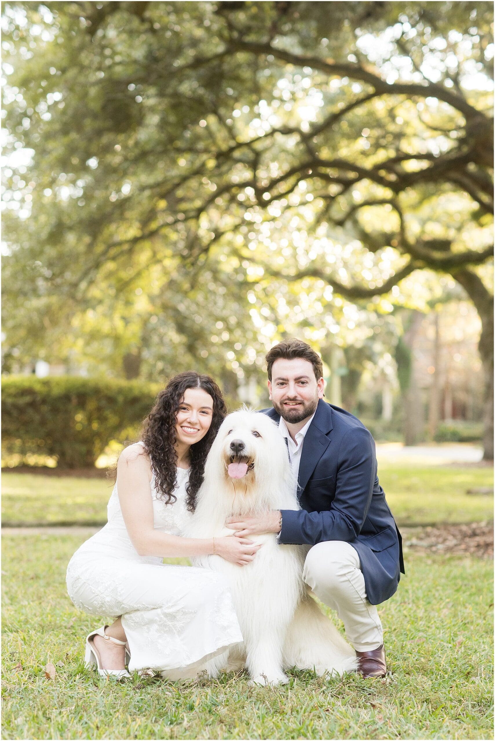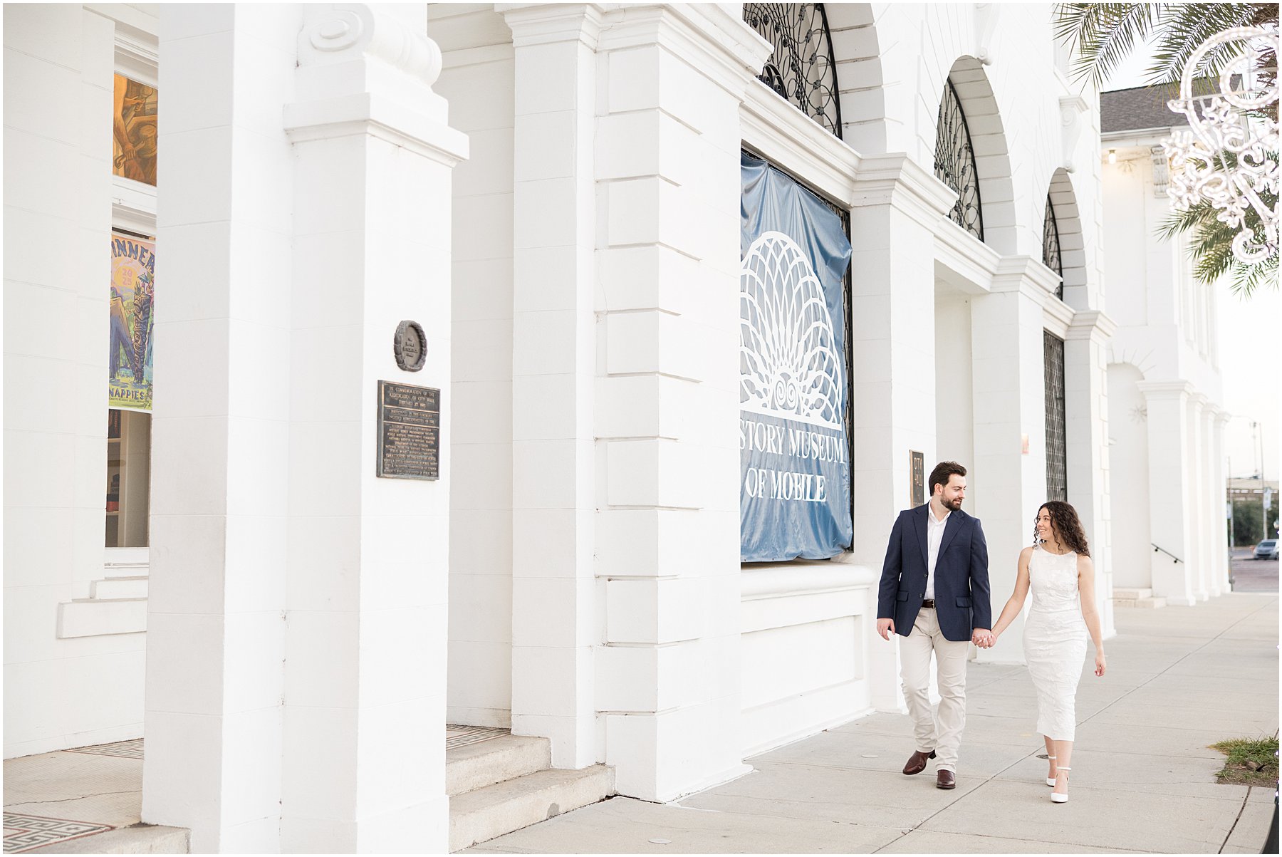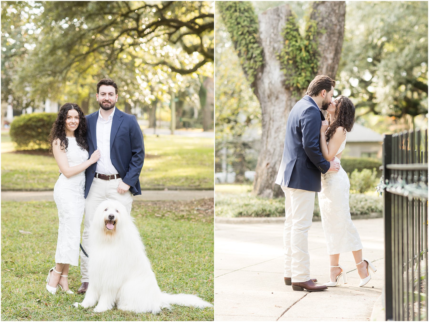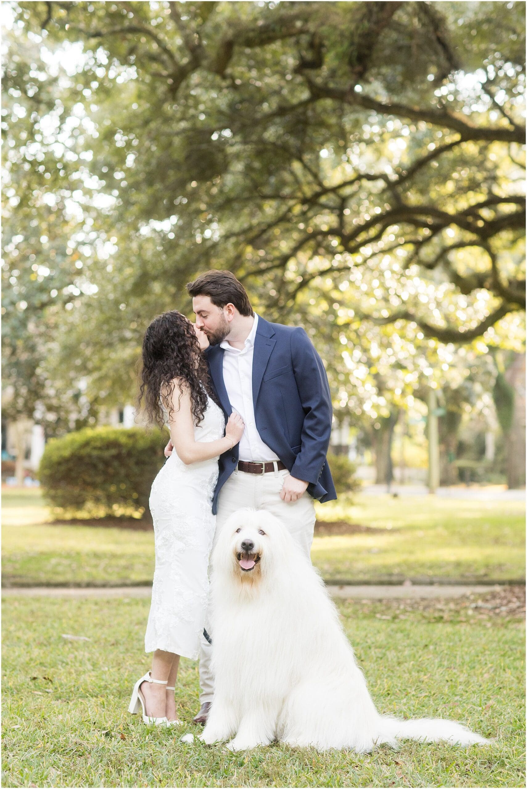 I love that Lauren and Aaron brought their pup, Percy, to their engagement session. He was such a star! I had previously met Percy when he was much younger, so it was fun to see him all grown up. He’s like a big stuffed animal and so friendly! After a few photos with Percy, he headed home with Lauren’s mom and we headed to downtown Mobile for the rest of their session.