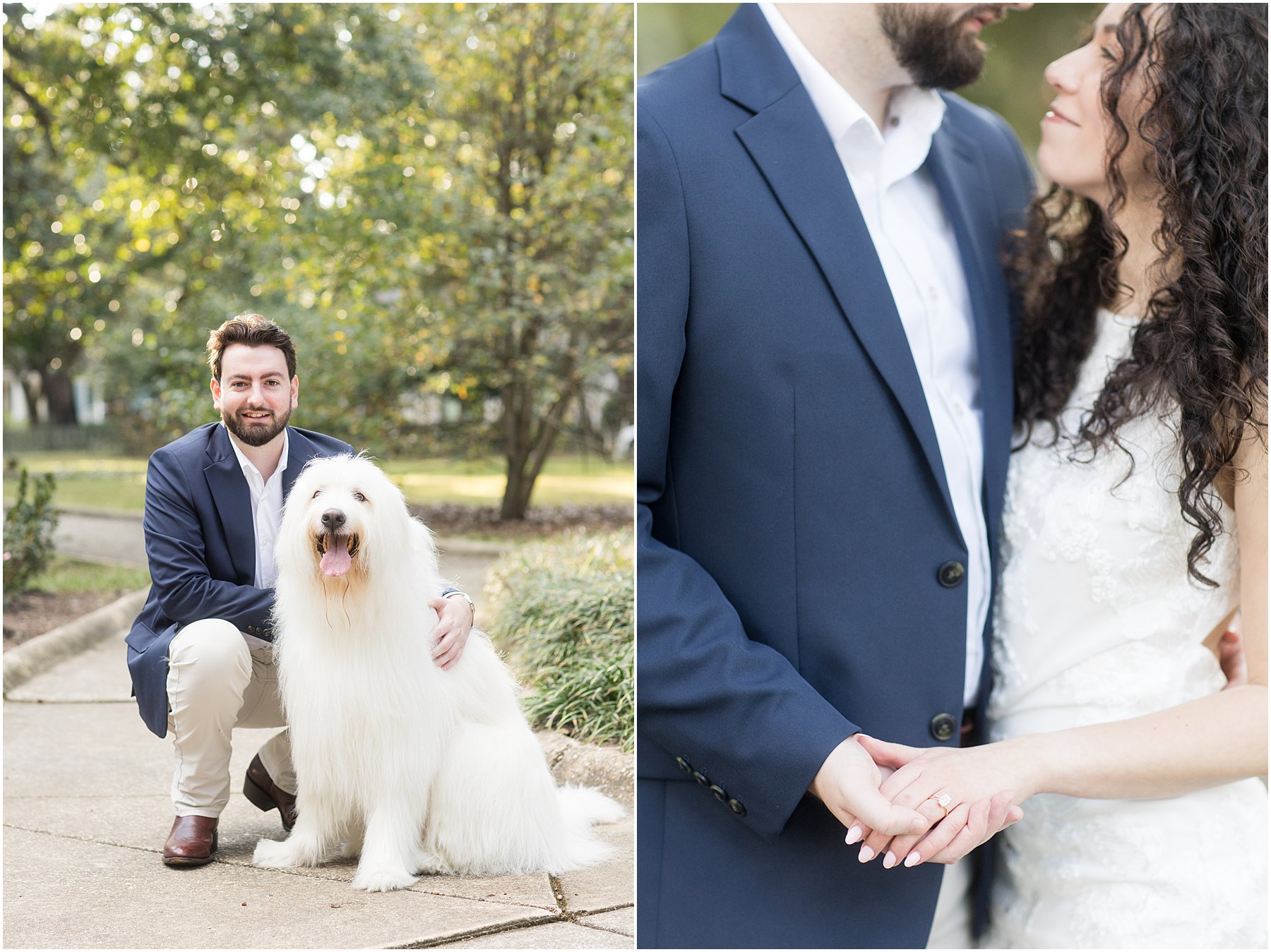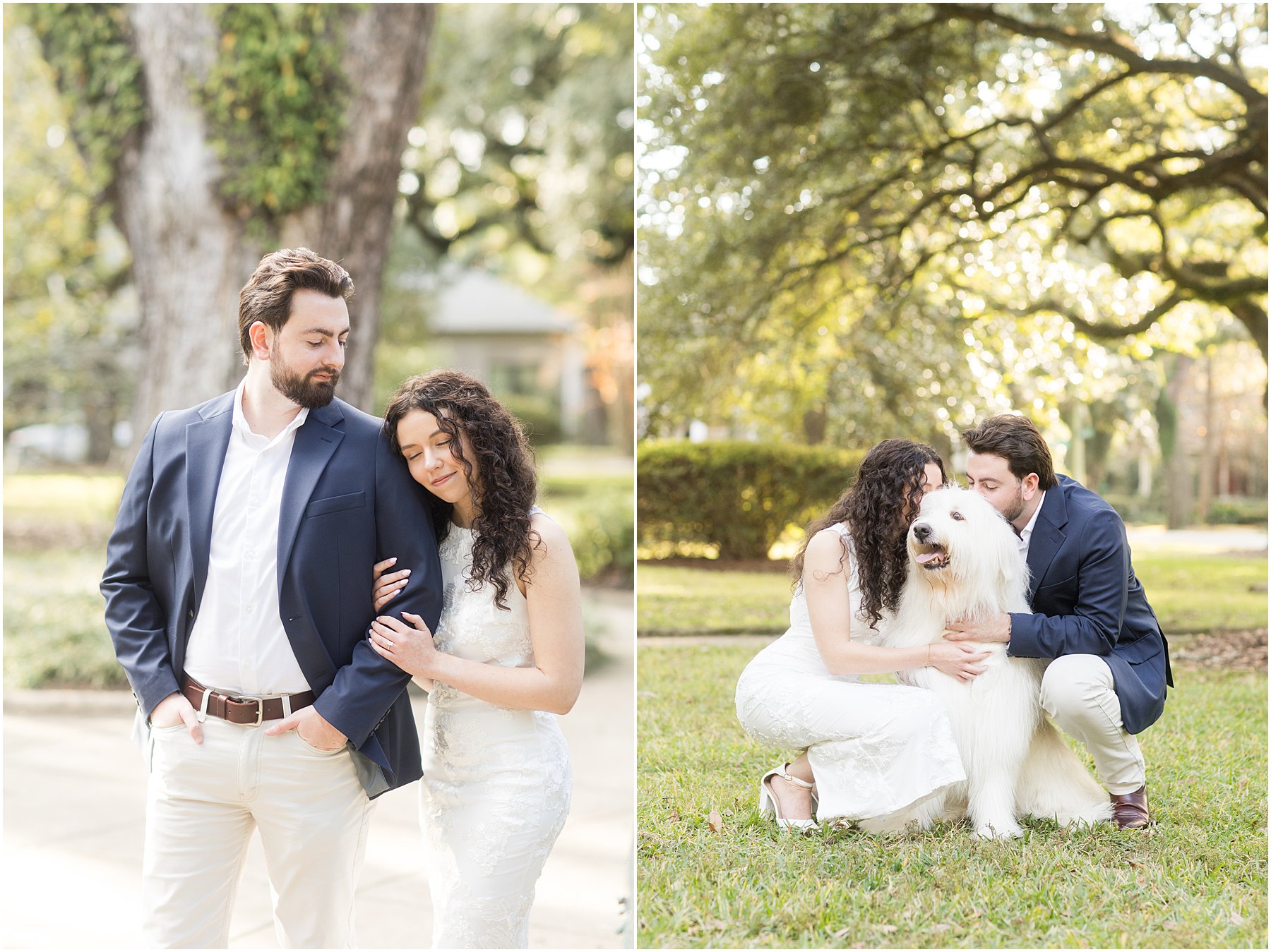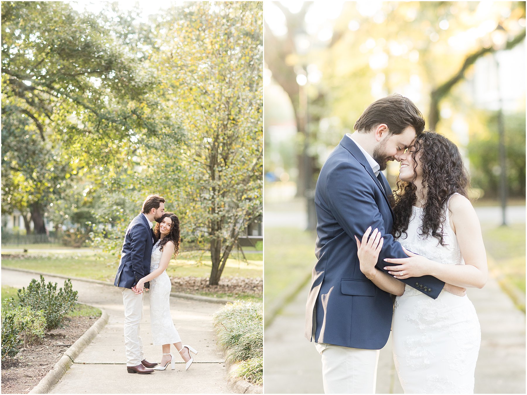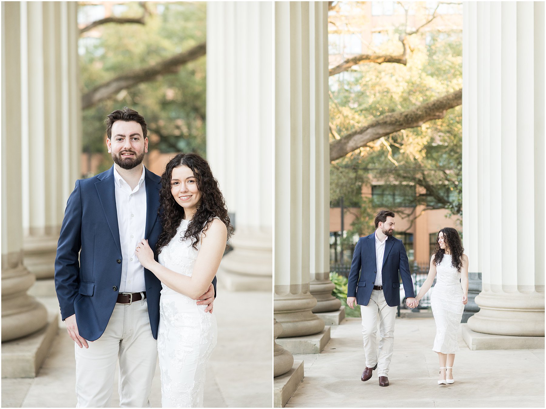 I love that Lauren and Aaron brought their pup, Percy, to their engagement session. He was such a star! I had previously met Percy when he was much younger, so it was fun to see him all grown up. He’s like a big stuffed animal and so friendly! After a few photos with Percy, he headed home with Lauren’s mom and we headed to downtown Mobile for the rest of their session.