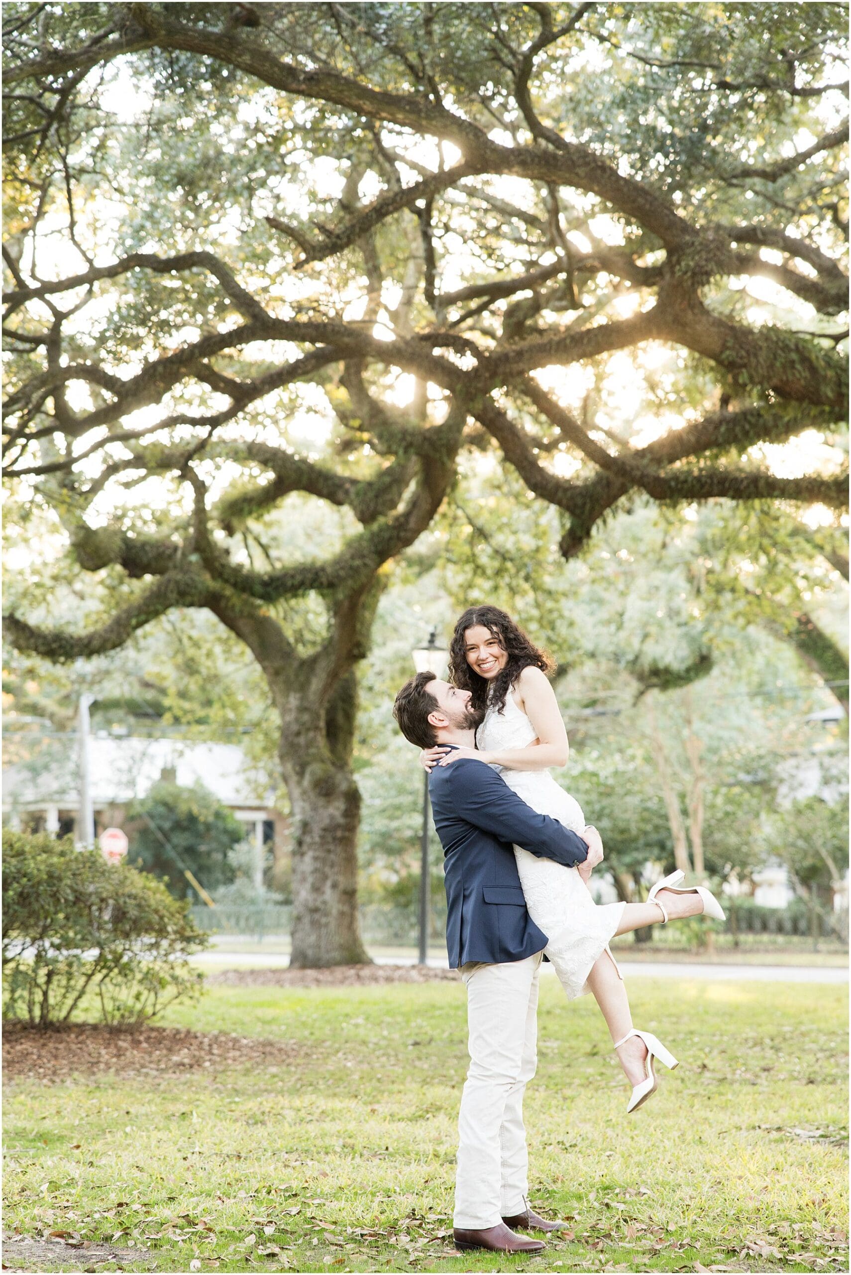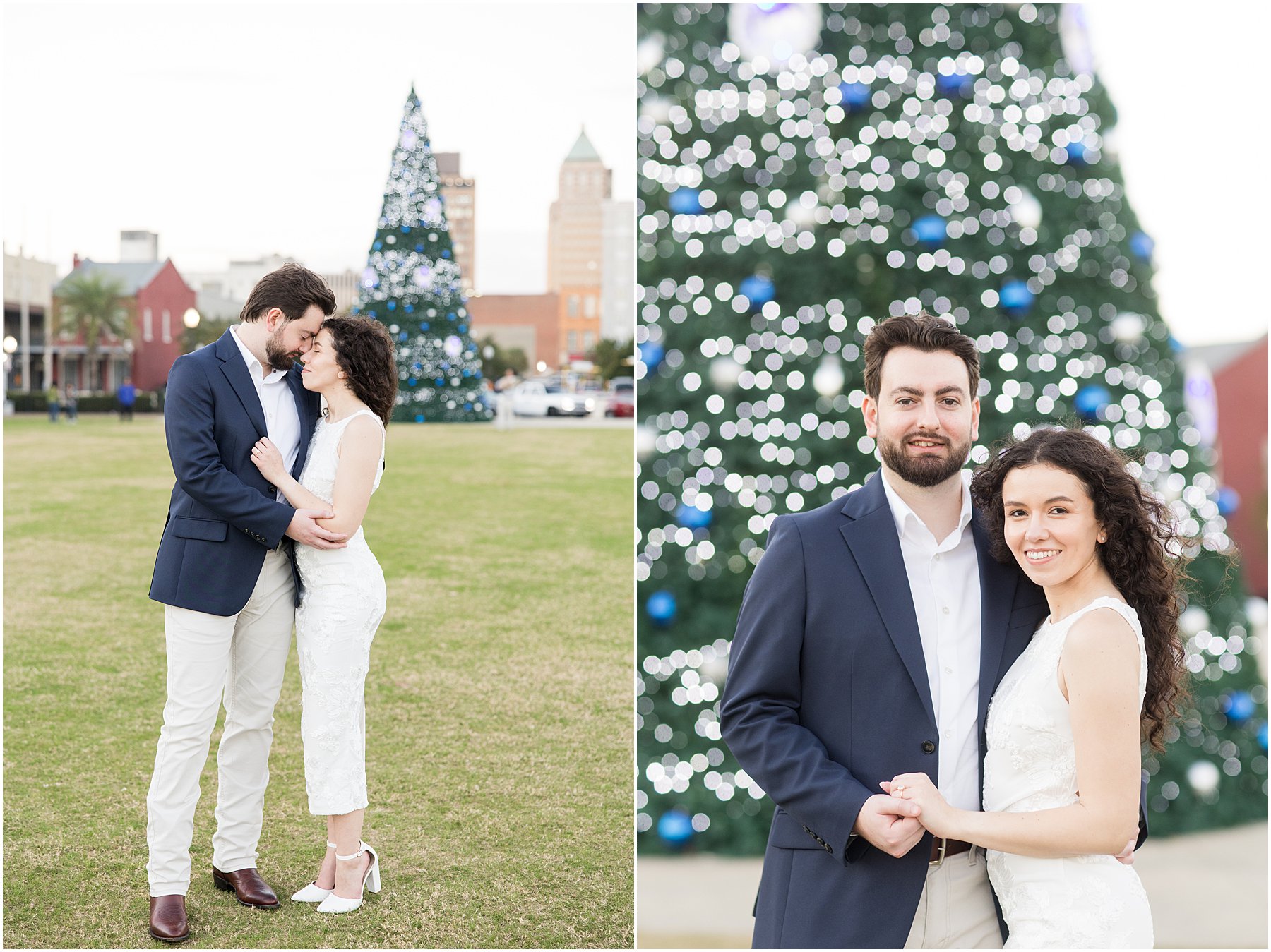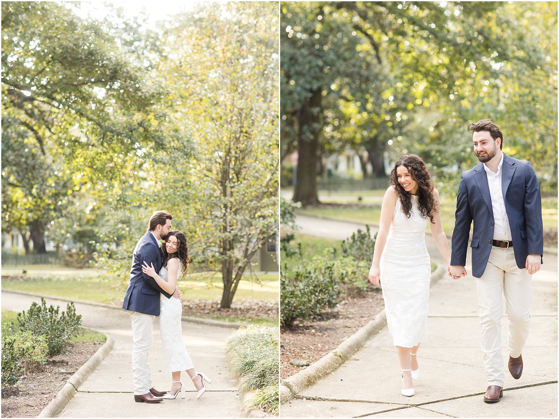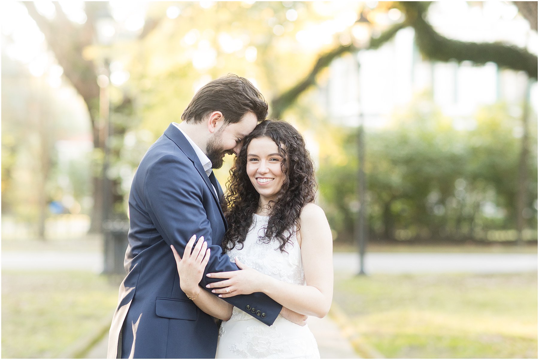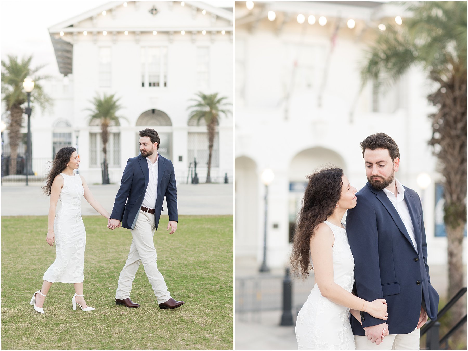 I love that Lauren and Aaron brought their pup, Percy, to their engagement session. He was such a star! I had previously met Percy when he was much younger, so it was fun to see him all grown up. He’s like a big stuffed animal and so friendly! After a few photos with Percy, he headed home with Lauren’s mom and we headed to downtown Mobile for the rest of their session.
