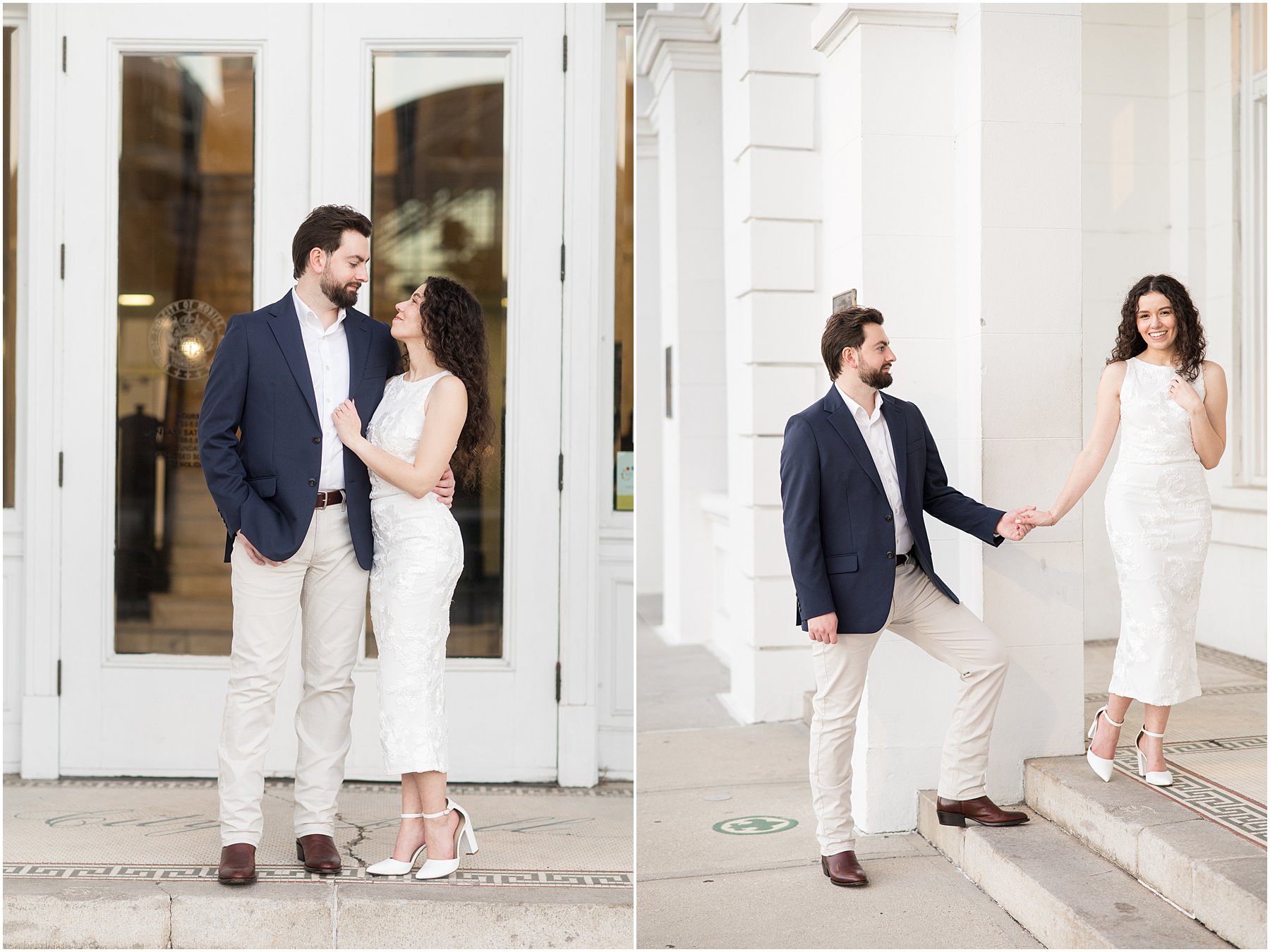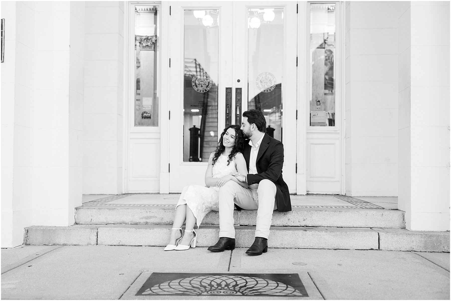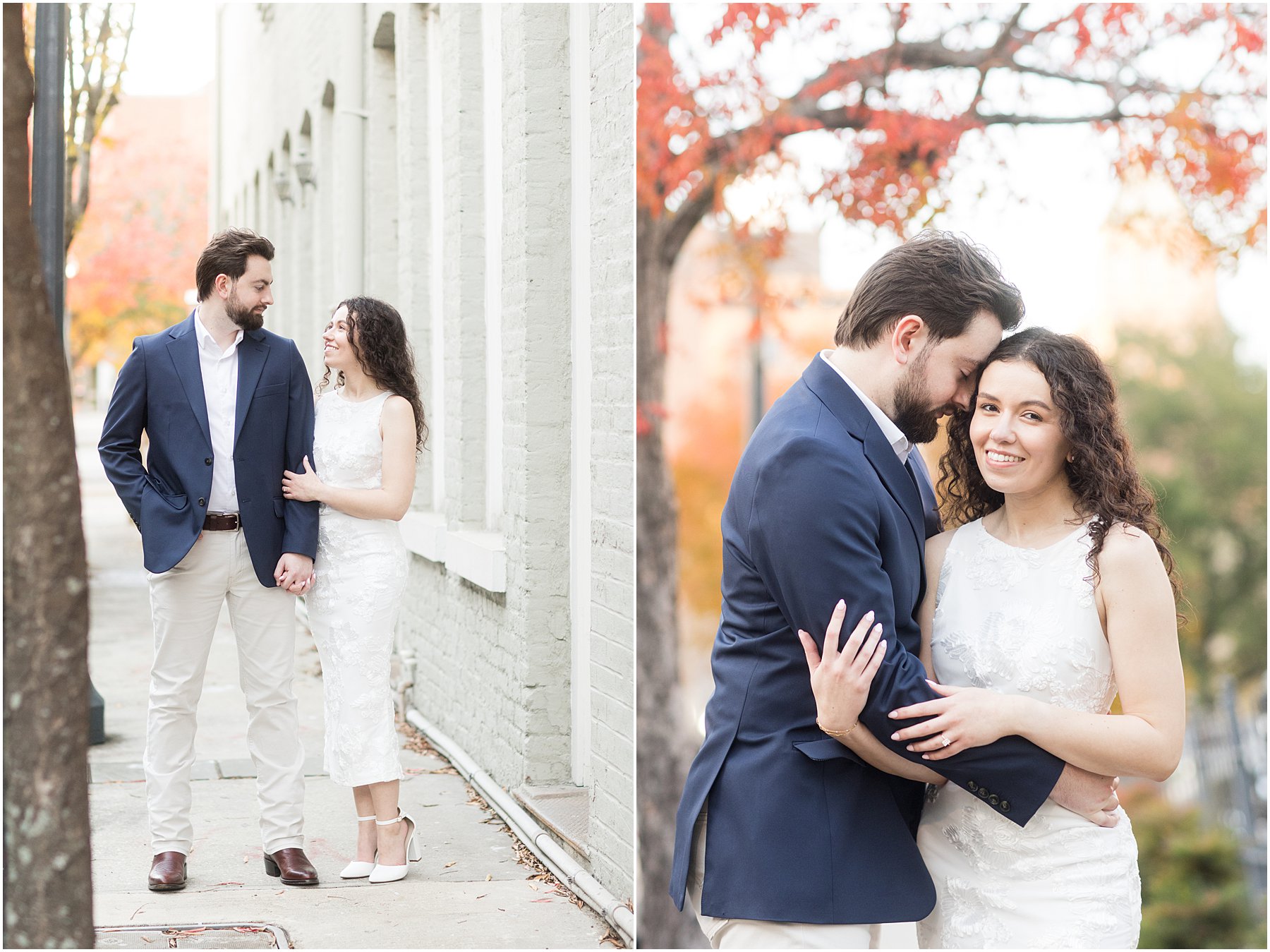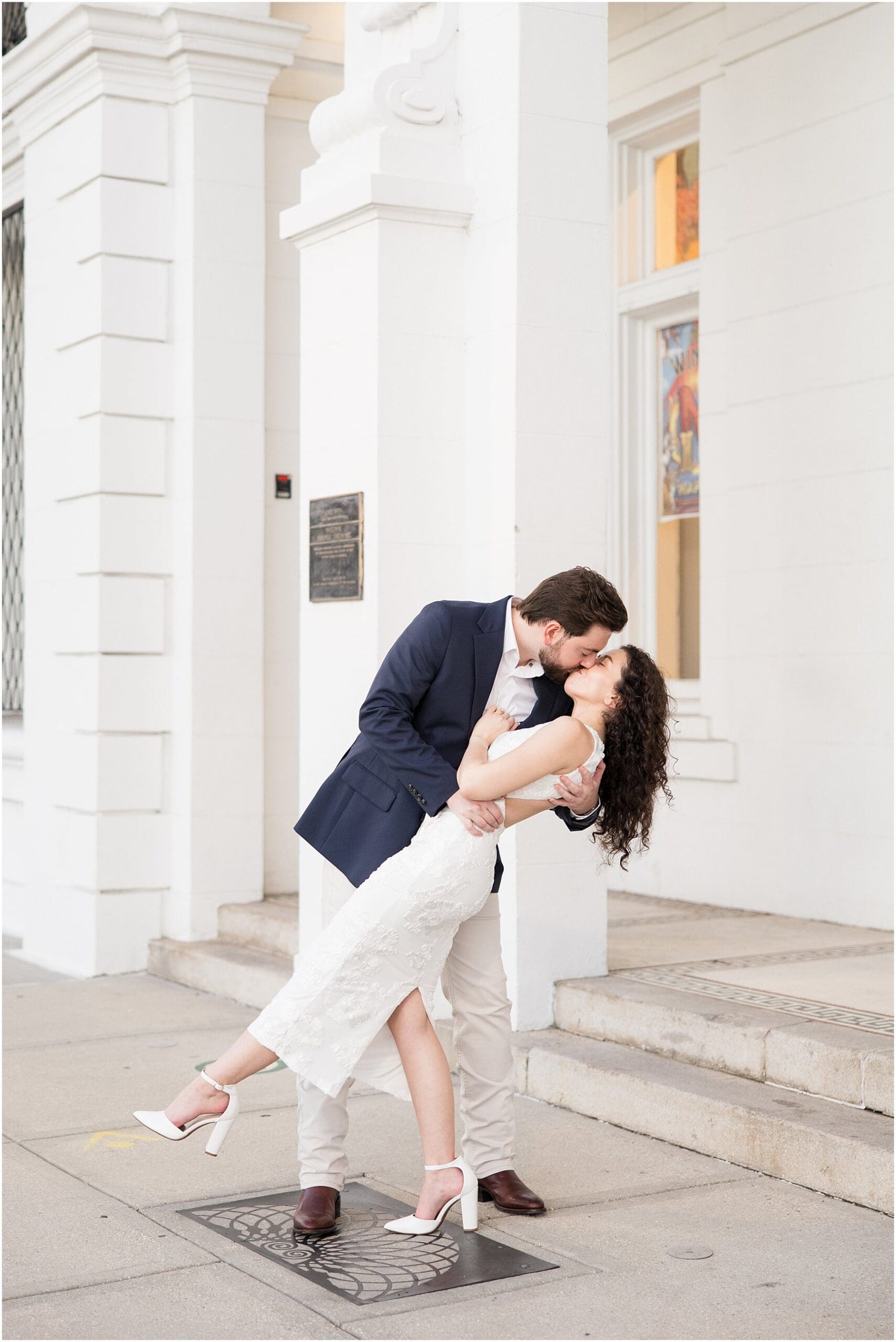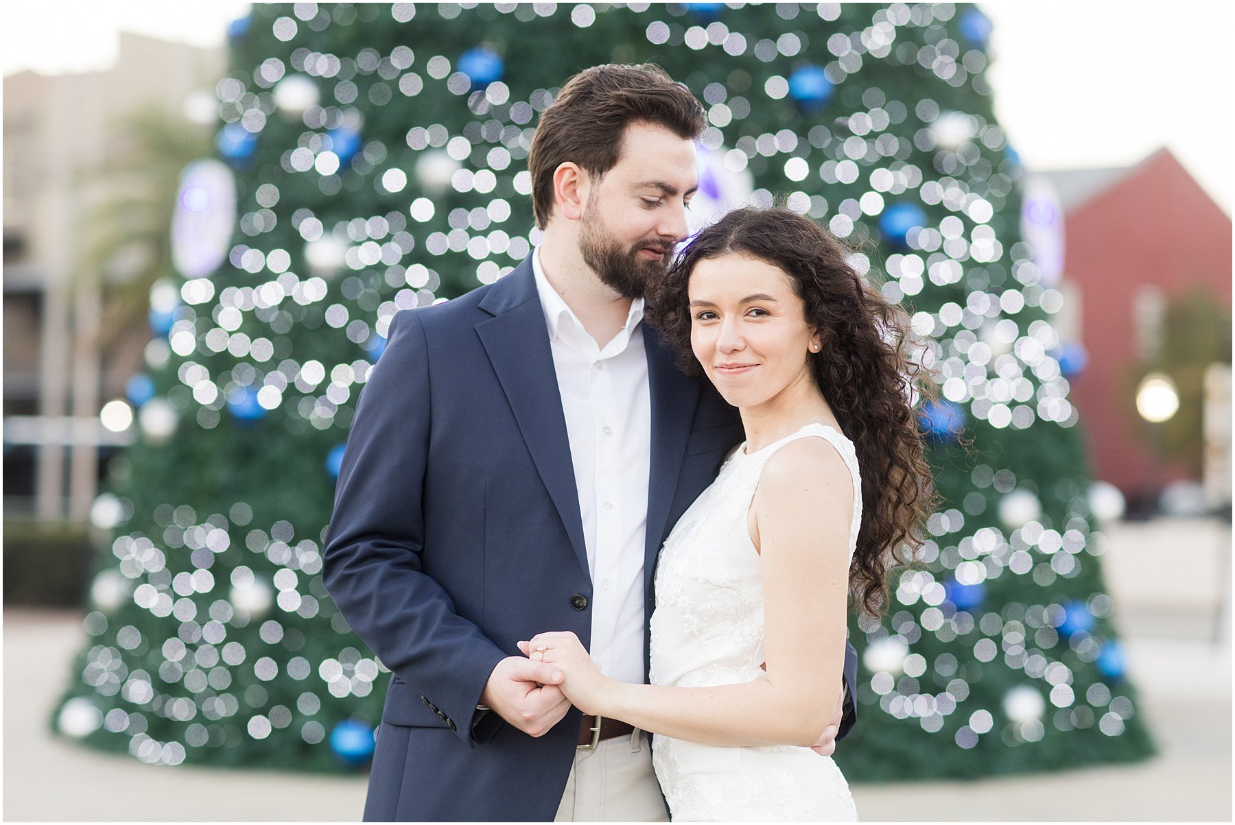 I love that Lauren and Aaron brought their pup, Percy, to their engagement session. He was such a star! I had previously met Percy when he was much younger, so it was fun to see him all grown up. He’s like a big stuffed animal and so friendly! After a few photos with Percy, he headed home with Lauren’s mom and we headed to downtown Mobile for the rest of their session.